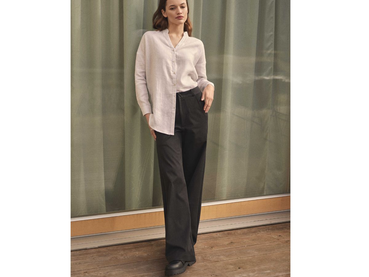 Outfit by Iva Fruhlingová | Brown linen pants & Deep blue shirt