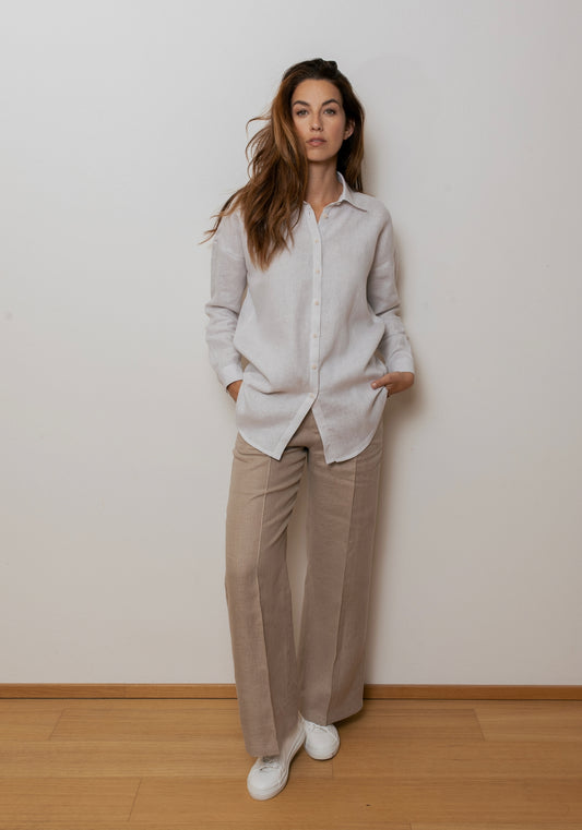 Dámska ľanová košeľa loose fit White