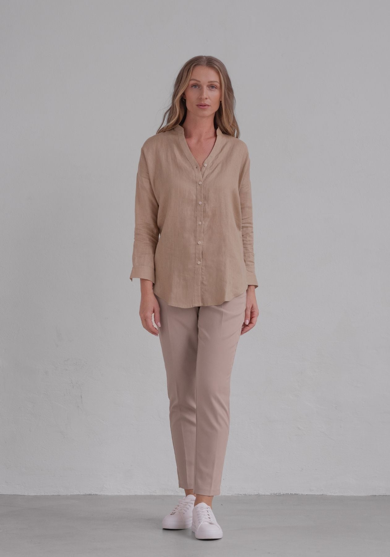 Dámska ľanová košeľa. Neuveriteľne príjemné na tele vďaka zmäkčujúcej úprave látky. Ideálny kúsok ležérnej elegancie do letného aj zimného šatníka. Veľkosť je skôr väčšia - loose fit. Vyrobené precízne a udržateľne v ČR a SR. Látka po vypratí ešte podstatne zjemní.