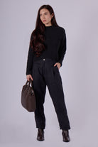 Pre maximálne pohodlie je v zadnej časti pása všitá guma, ktorá sa prispôsobí postave bez nepríjemného tlaku. Predná časť zostáva klasická – so zapínaním na gombík a zips – a pútka na opasok umožňujú jednoduché doplnenie outfitu aj do formálnejšieho štýlu.