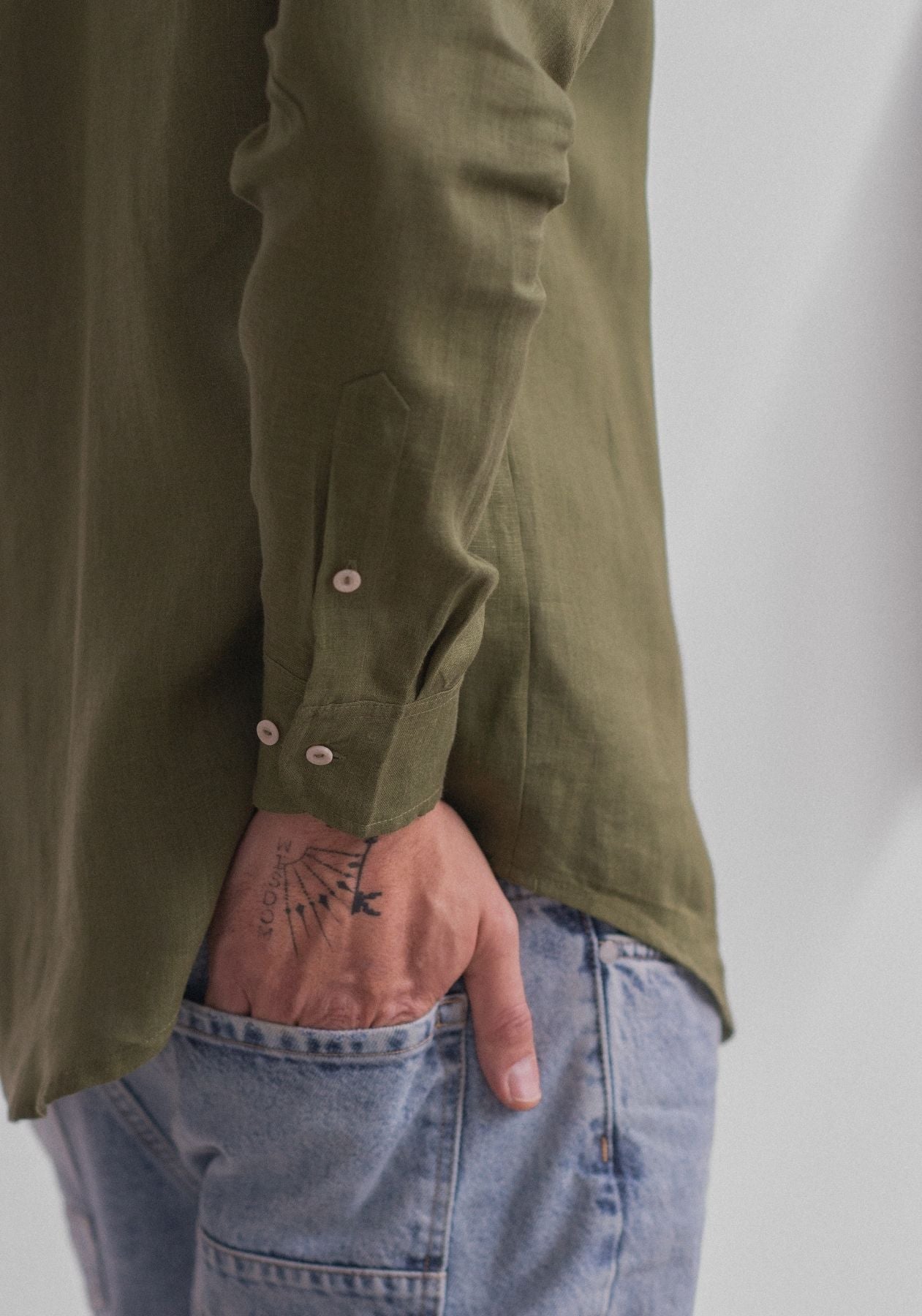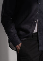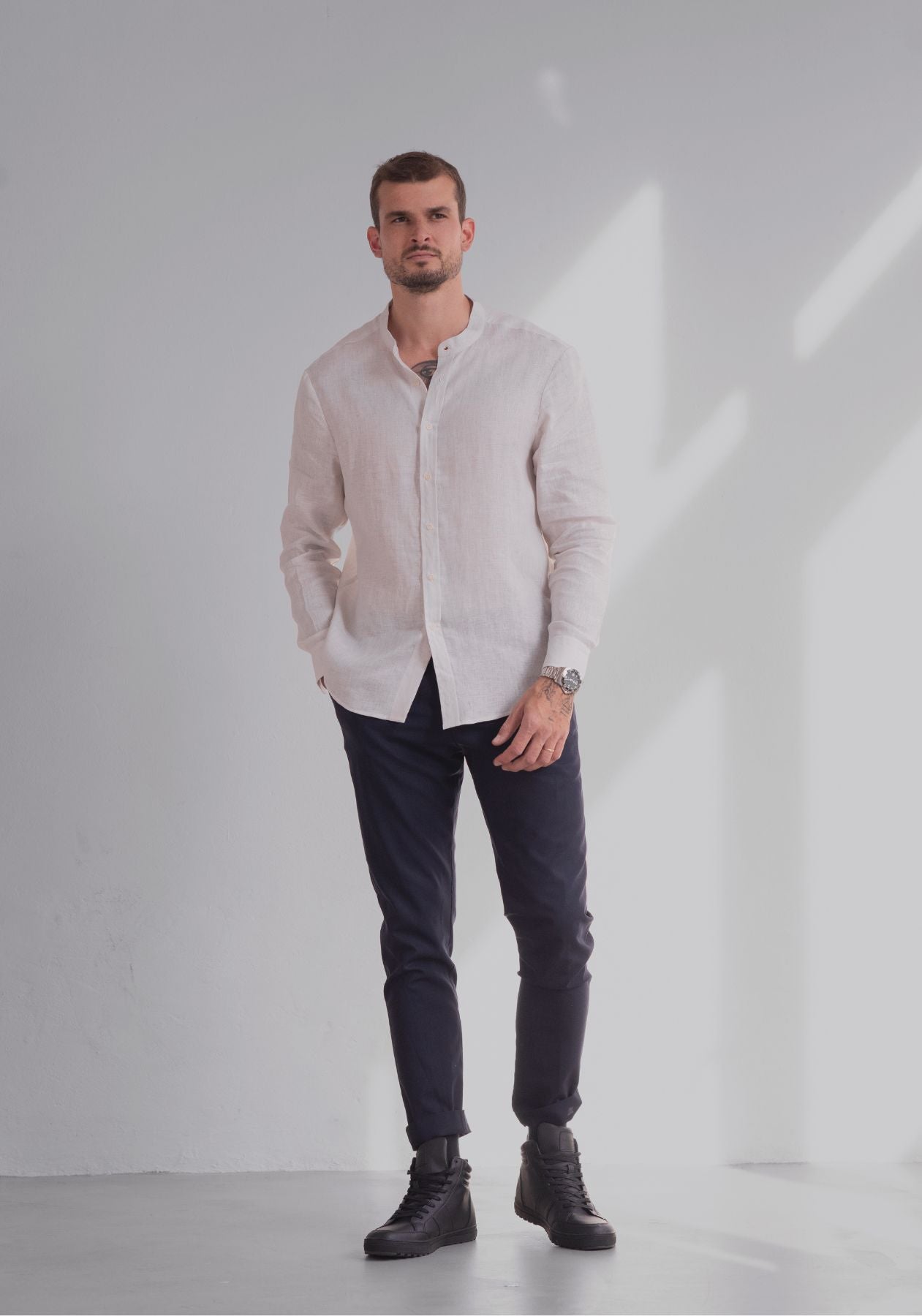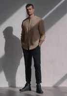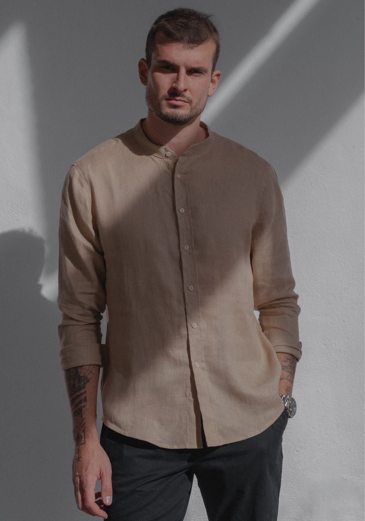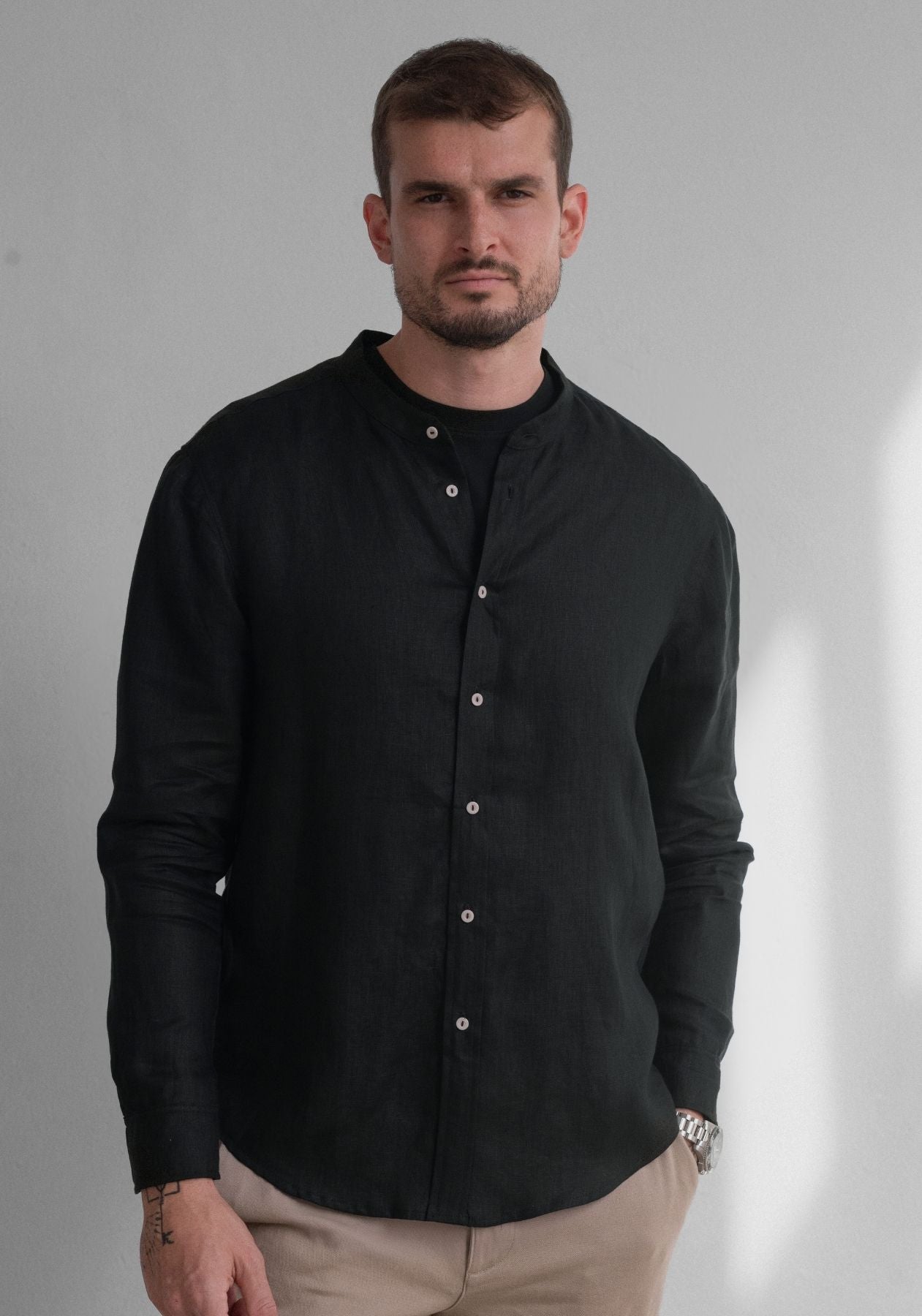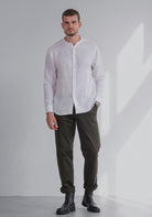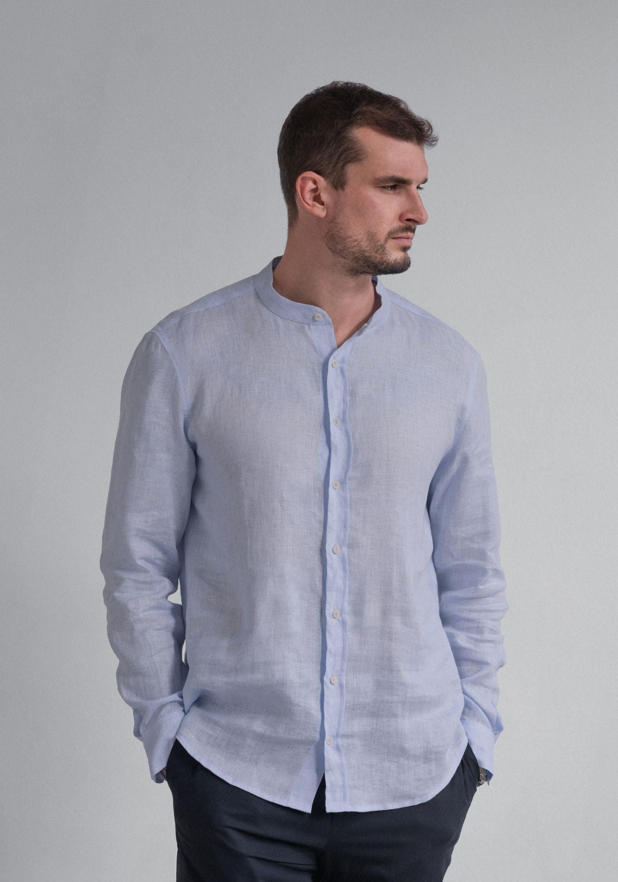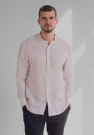 Pánska ľanová košeľa bez goliera - regular fit