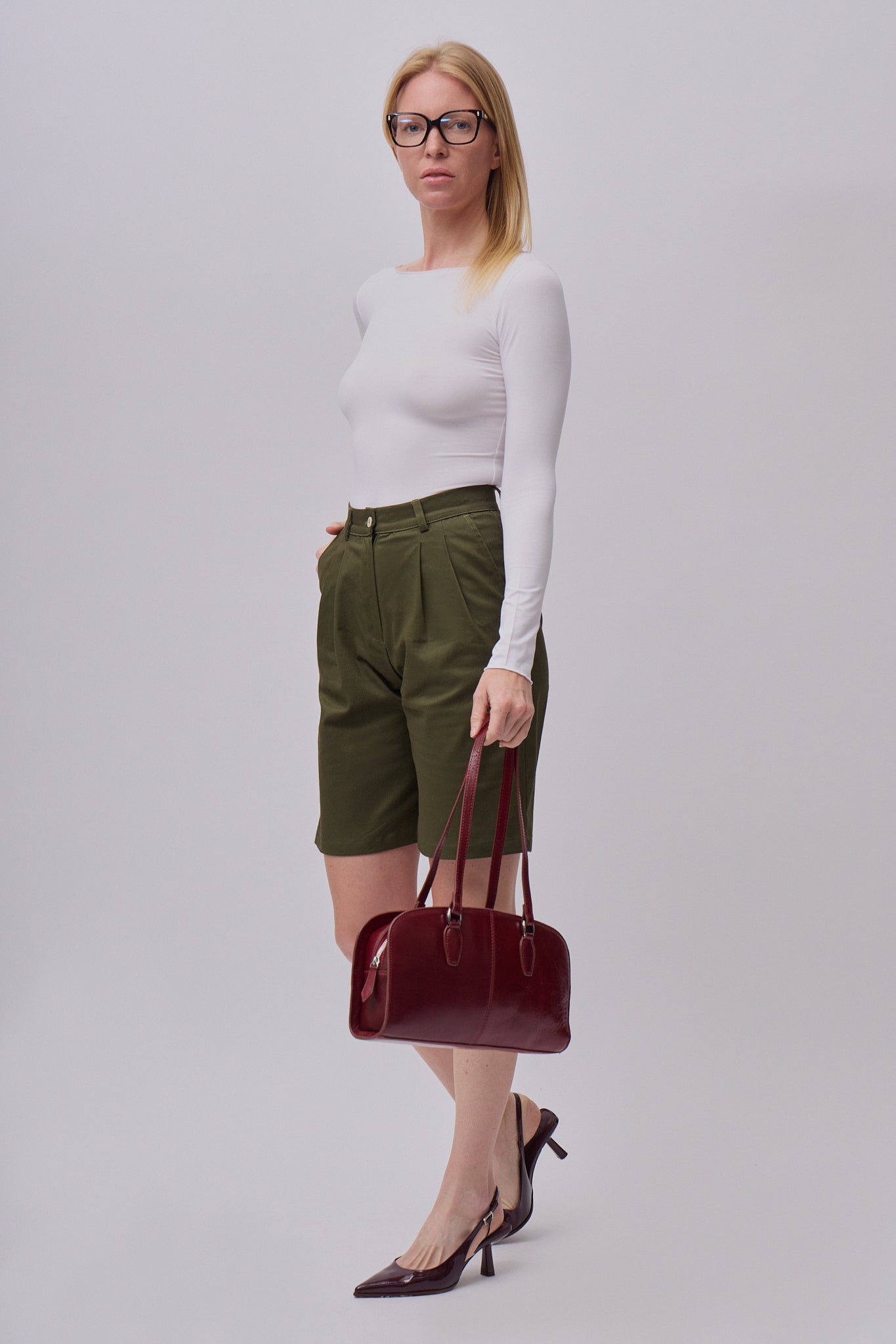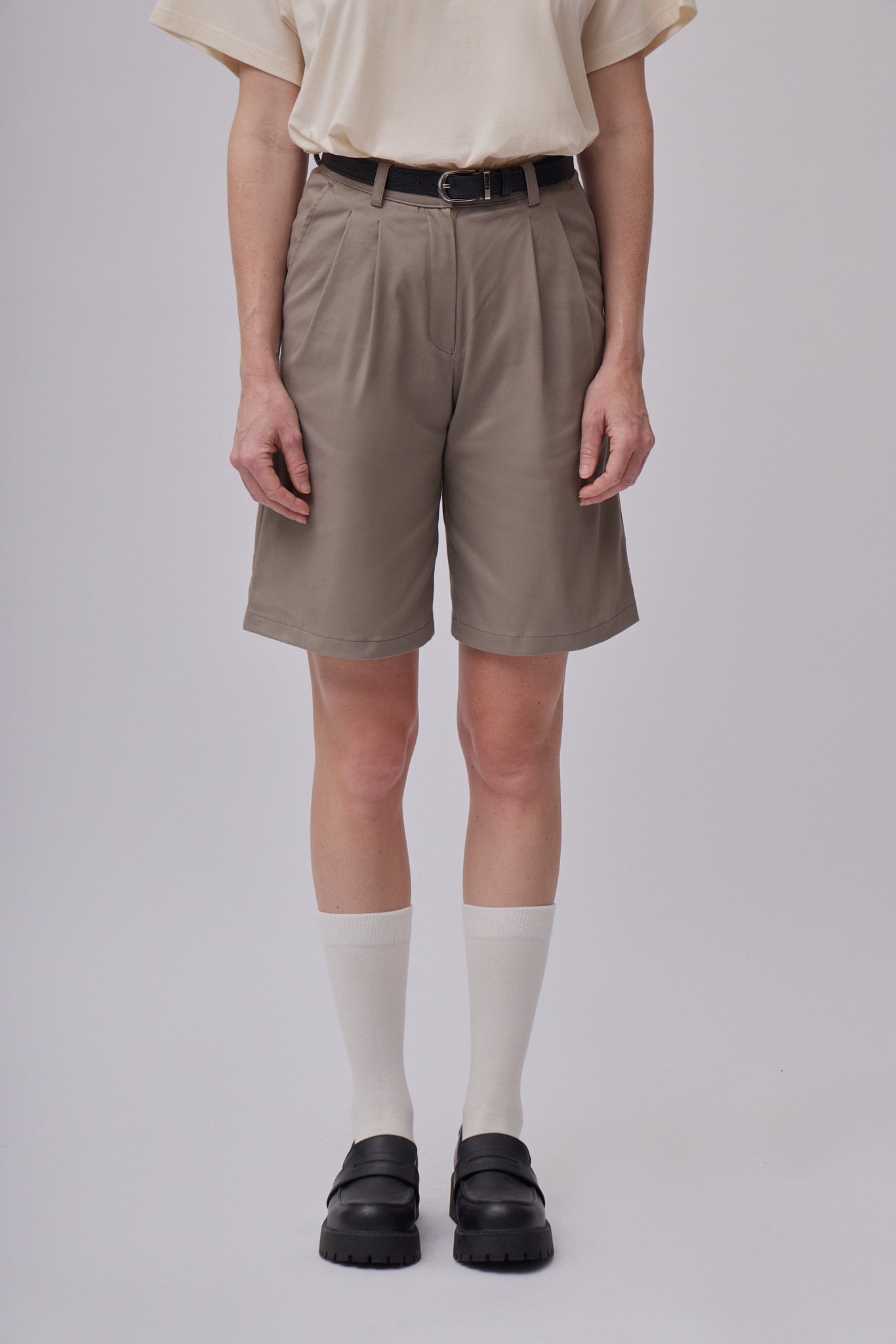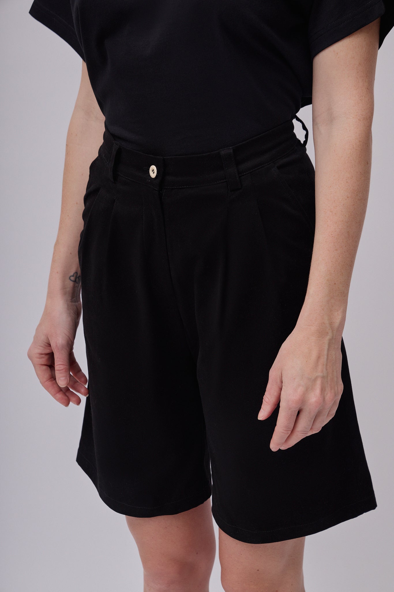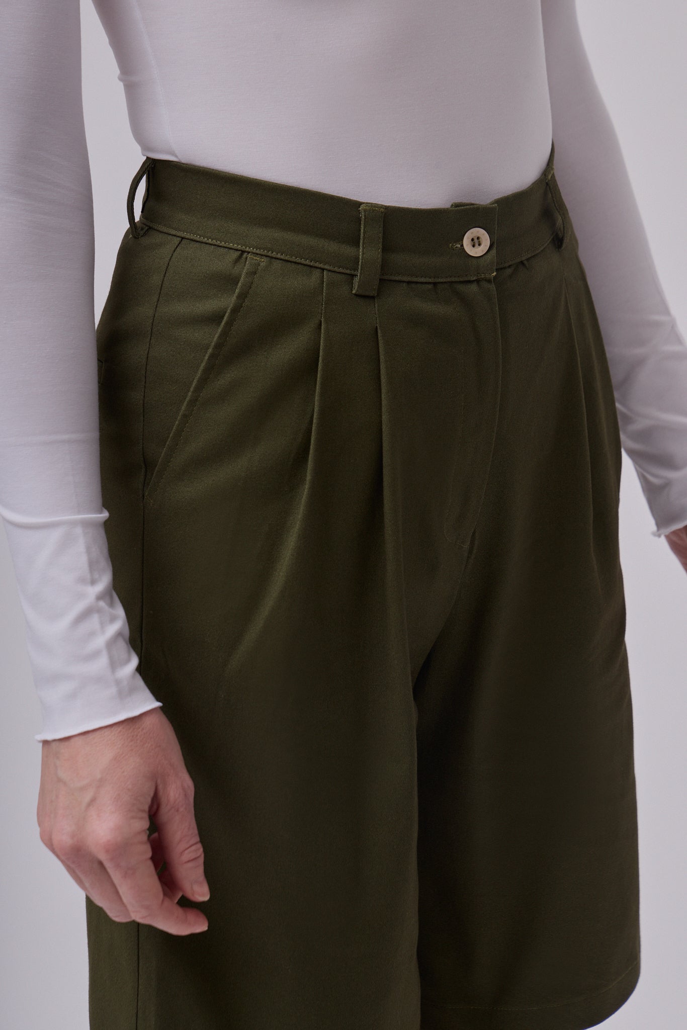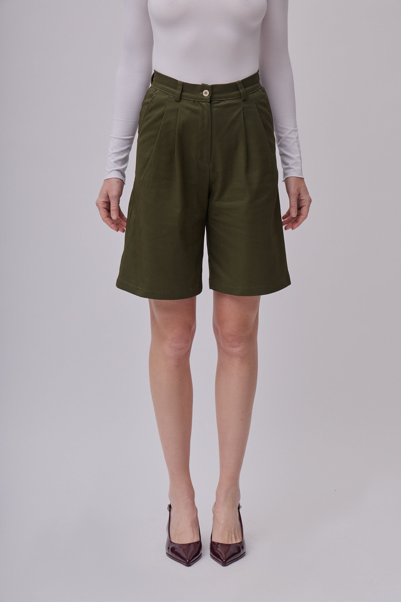 Dámske bavlnené široké šortky sú nadčasovým kúskom, ktorý by nemal chýbať v žiadnom kapsulovom šatníku. Vďaka čistému, elegantnému strihu pôsobia upravene a profesionálne, takže sa skvele hodia do kancelárie, na pracovné stretnutia aj formálnejšie príležitosti. Zároveň ich jednoducho skombinujete aj s ležérnejšími kúskami pre pohodlný každodenný outfit. Pevný pás s pútkami na opasok zabezpečuje pohodlné usadenie v páse a elegantnú siluetu.