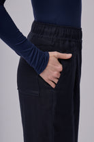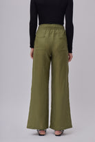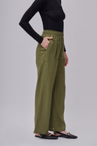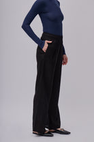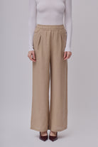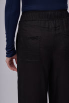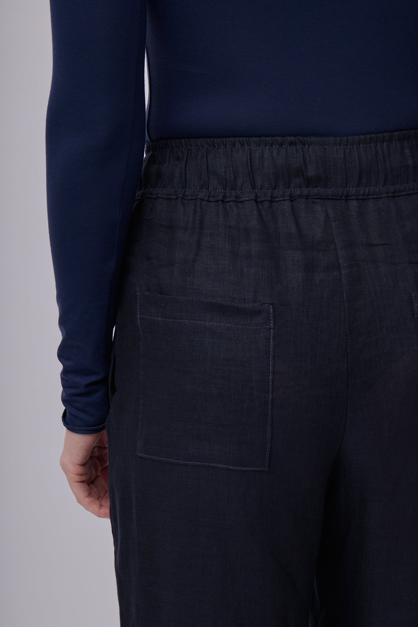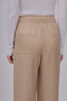 V páse majú skrytú gumu so šnúrkou na jednoduché prispôsobenie postave. Nechýbajú ani praktické zadné vrecká. Nohavice sú bez pukov a doplnené o jemný záhyb, ktorý podčiarkuje ich prirodzený, splývavý vzhľad.