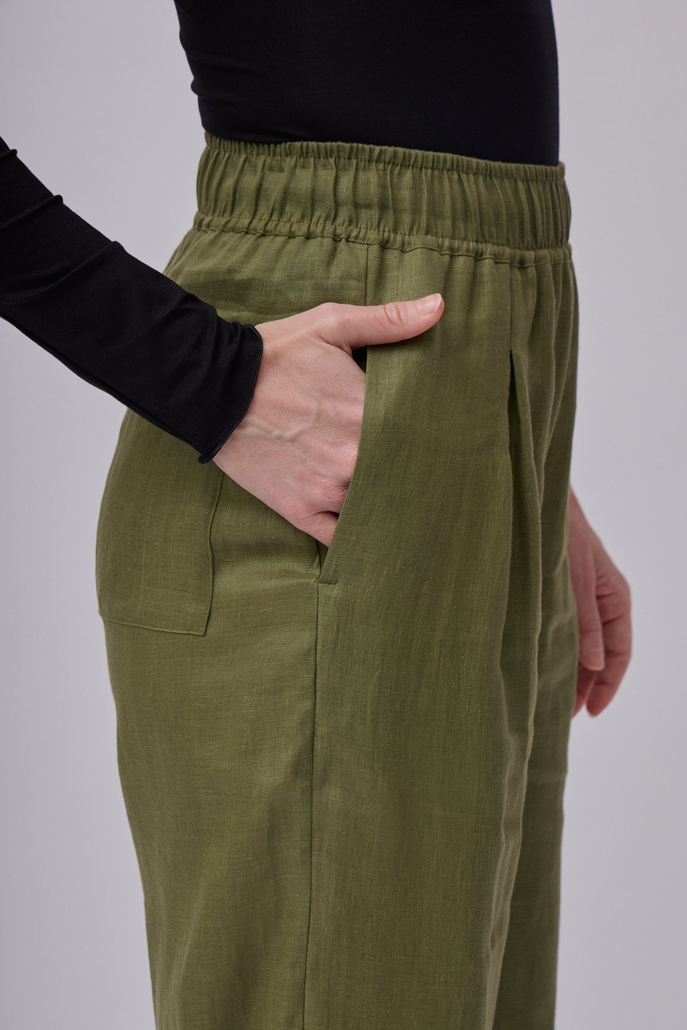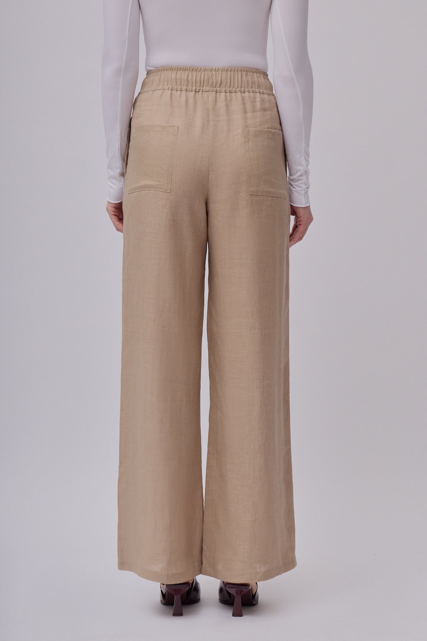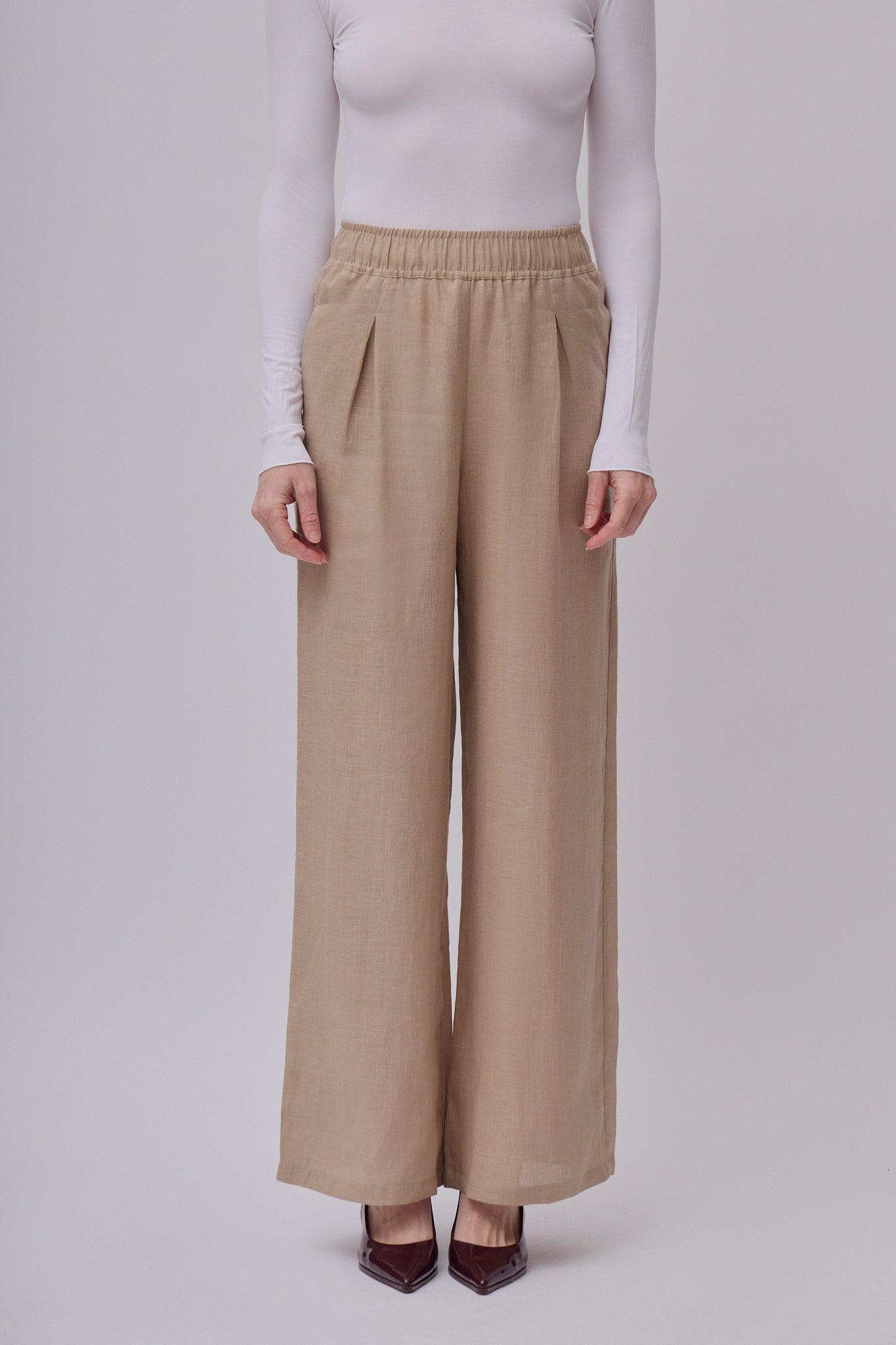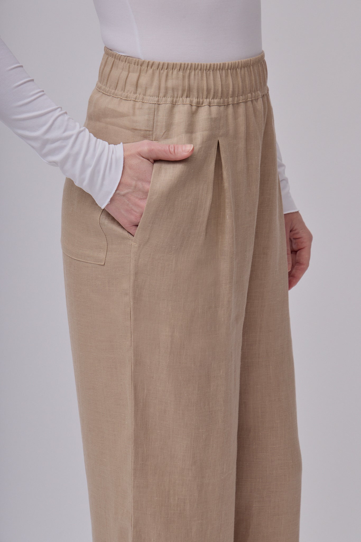 Ľahké nohavice zo 100 % ľanu v uvoľnenom strihu so širokými nohavicami, ktoré krásne splývajú a zabezpečujú maximálne pohodlie počas teplých dní. Vďaka jemnému materiálu a vzdušnému prevedeniu sú ideálne nielen na leto, ale aj na každodenné nosenie.