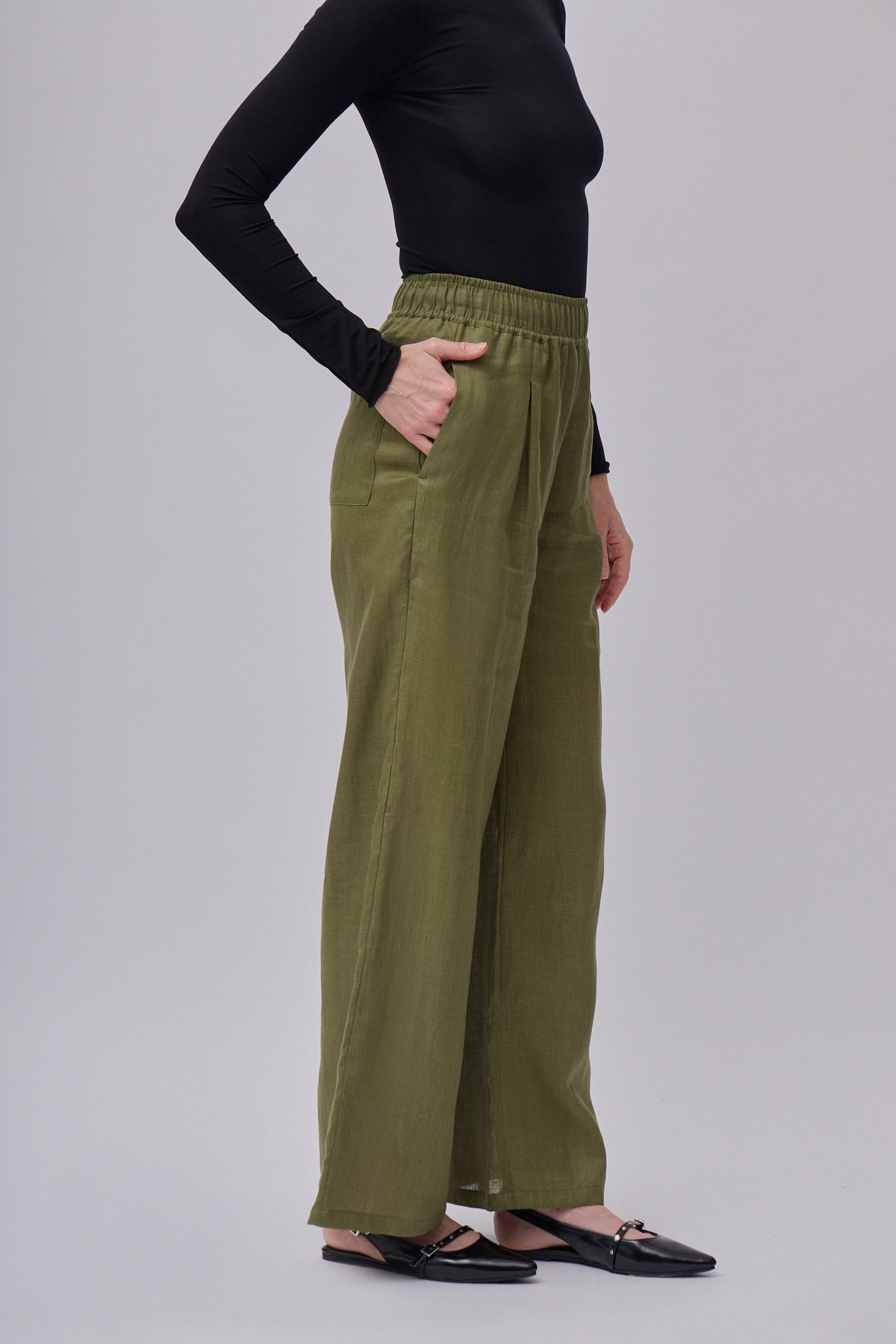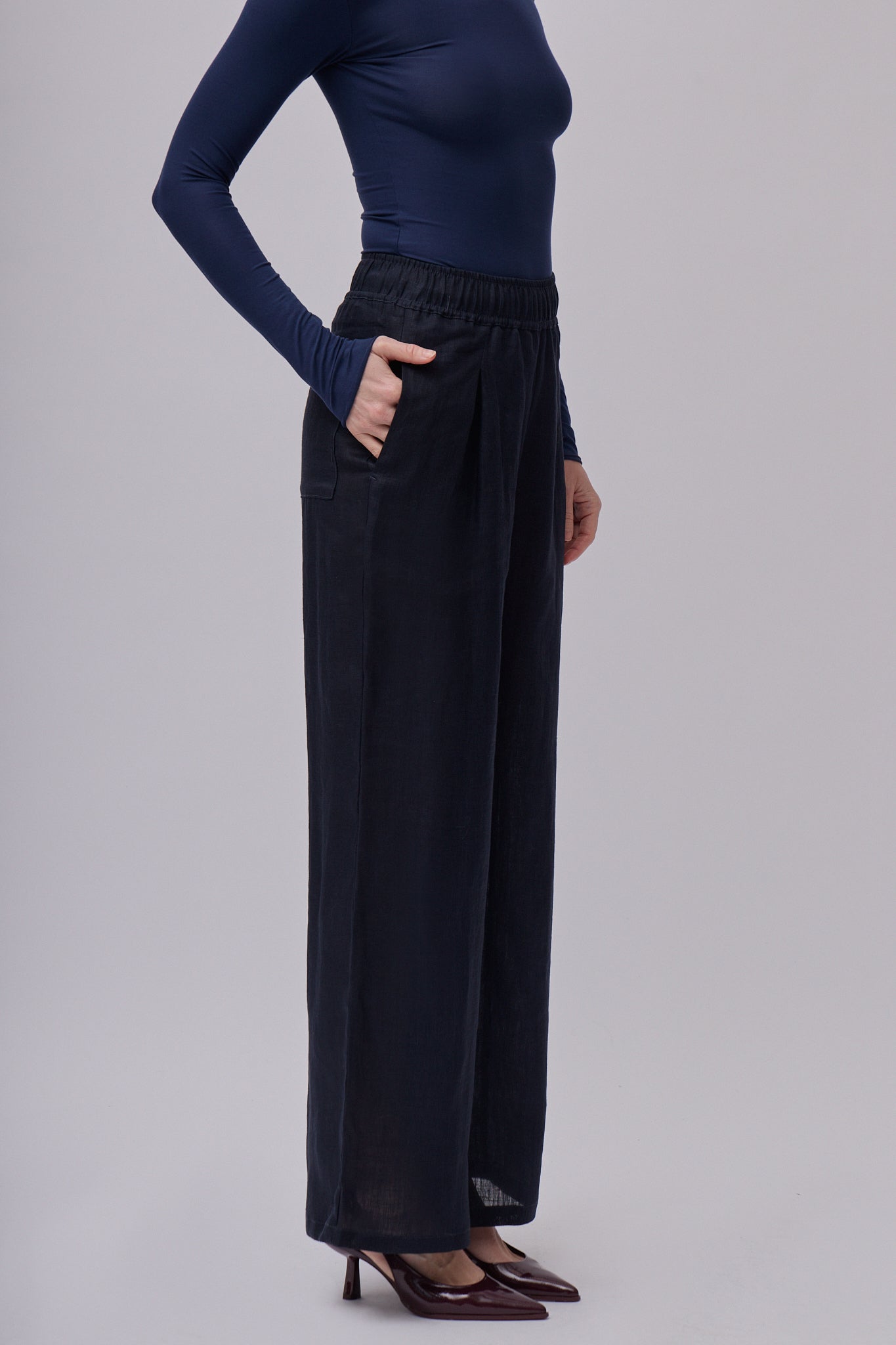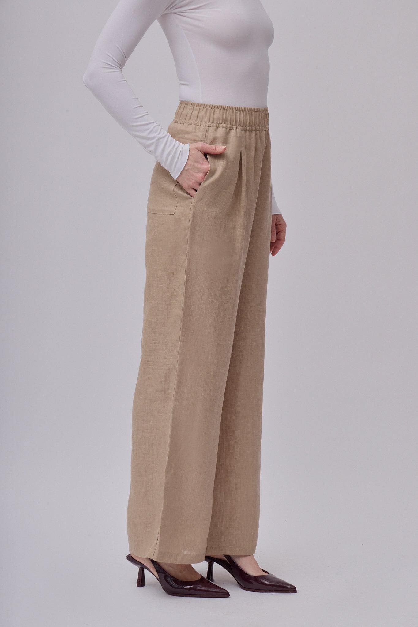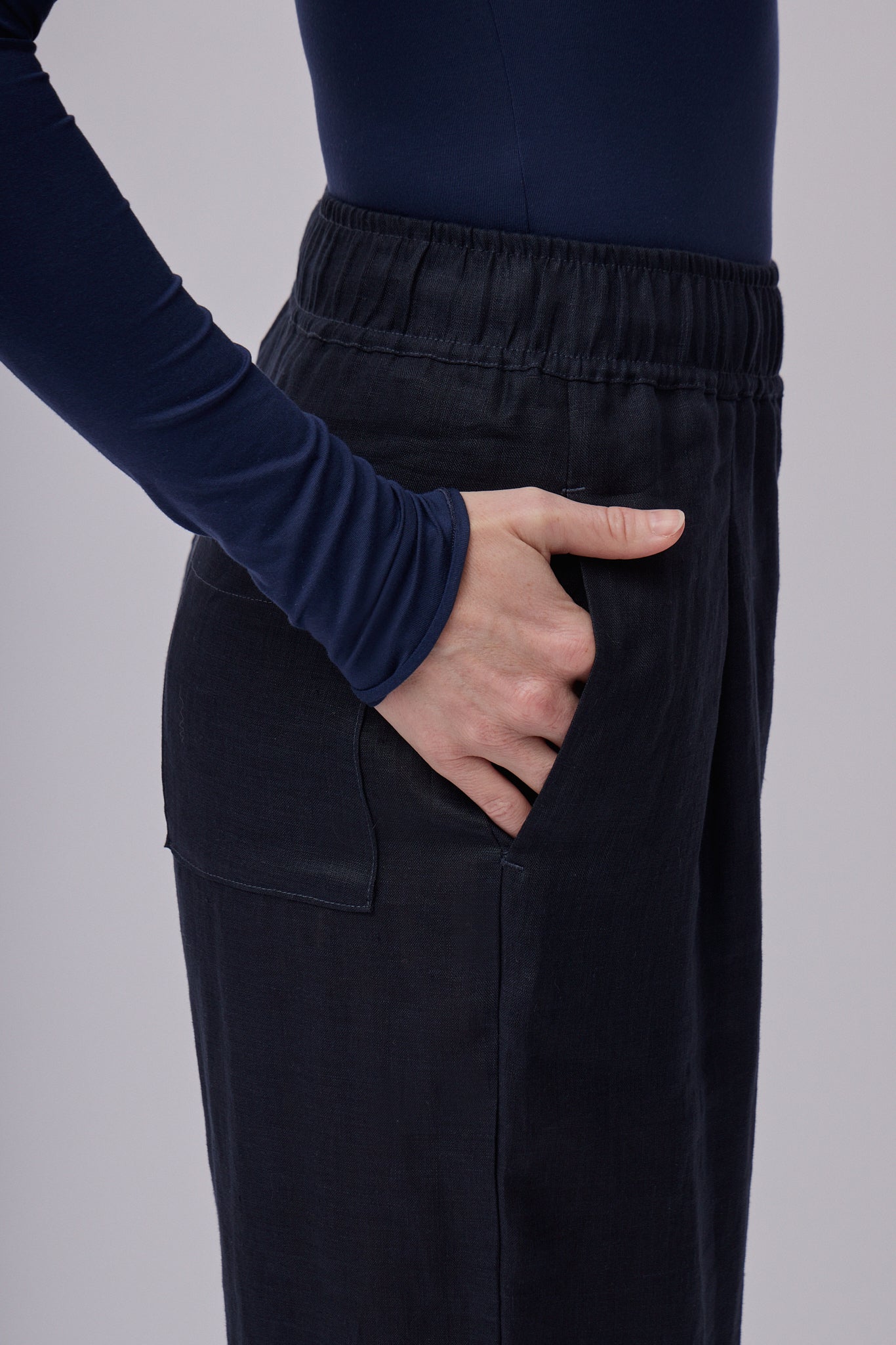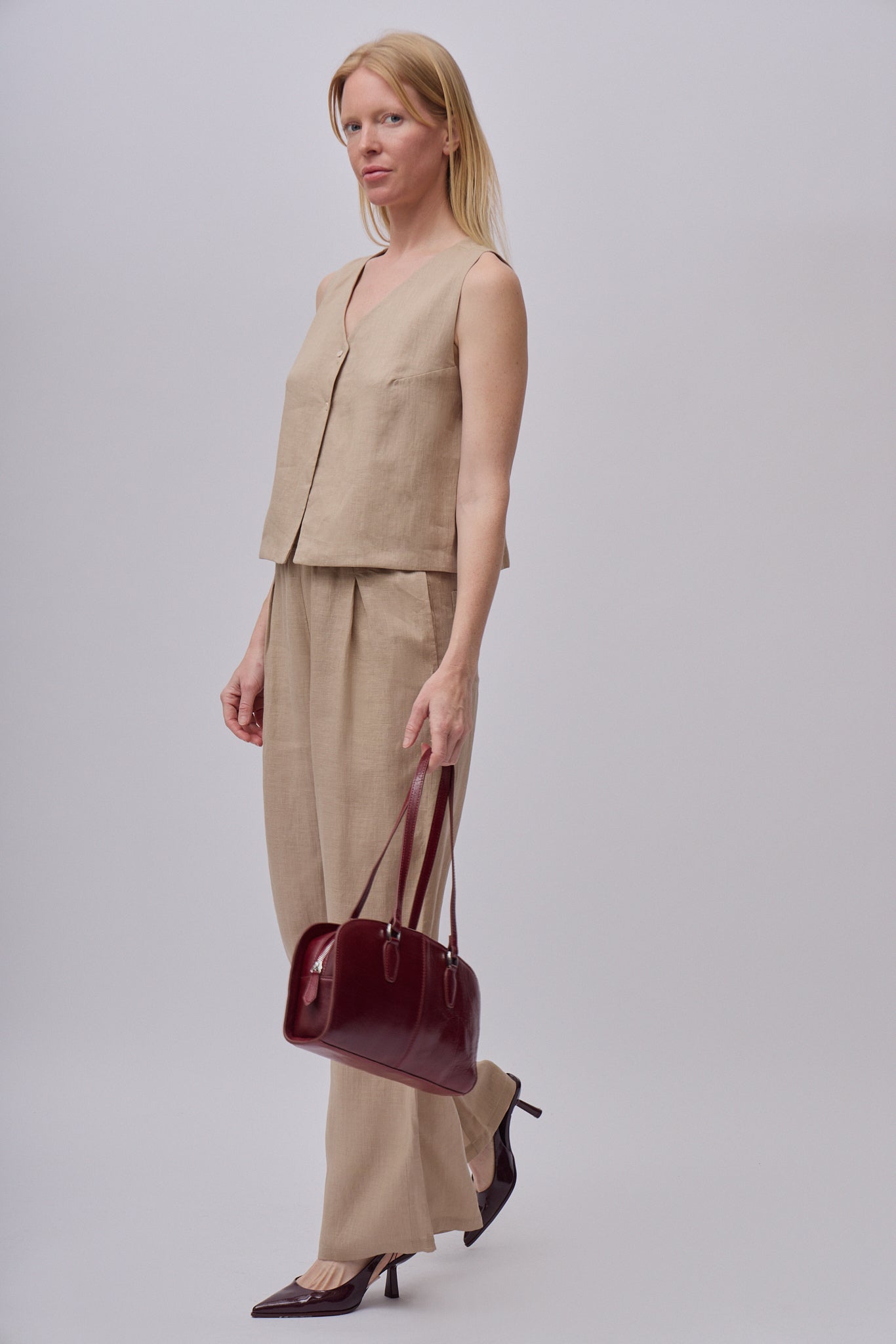 Ľahké nohavice zo 100 % ľanu v uvoľnenom strihu so širokými nohavicami, ktoré krásne splývajú a zabezpečujú maximálne pohodlie počas teplých dní. Vďaka jemnému materiálu a vzdušnému prevedeniu sú ideálne nielen na leto, ale aj na každodenné nosenie.