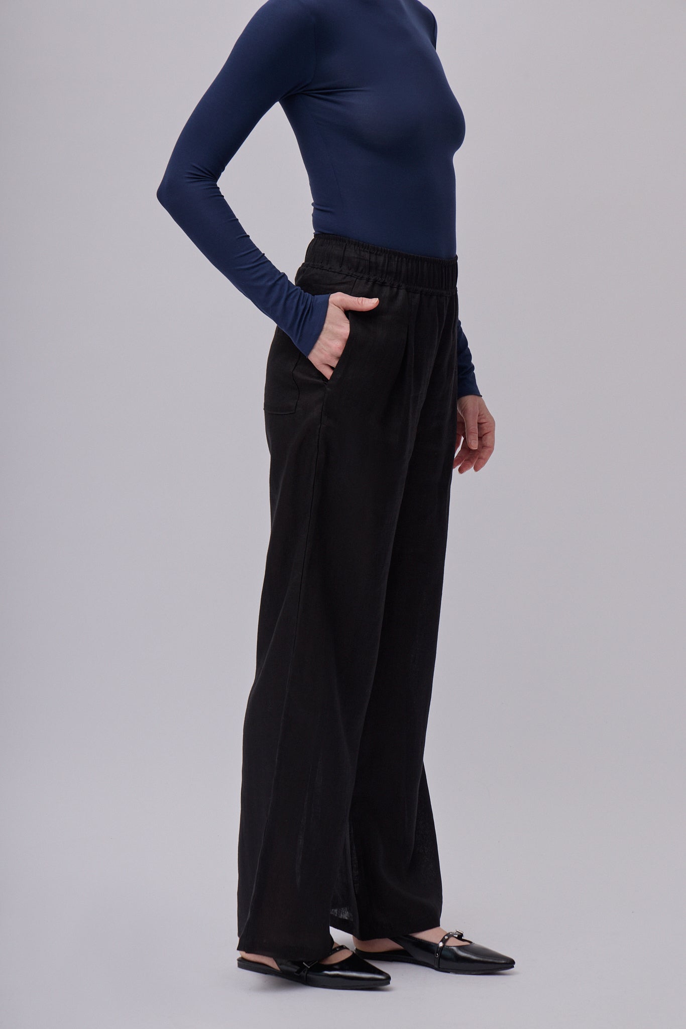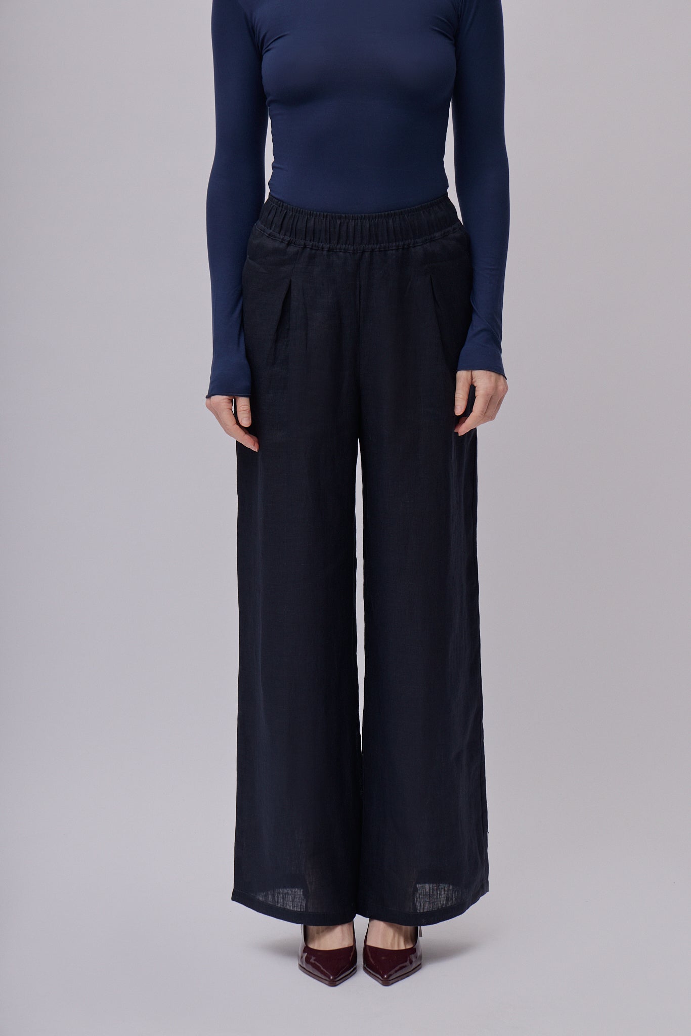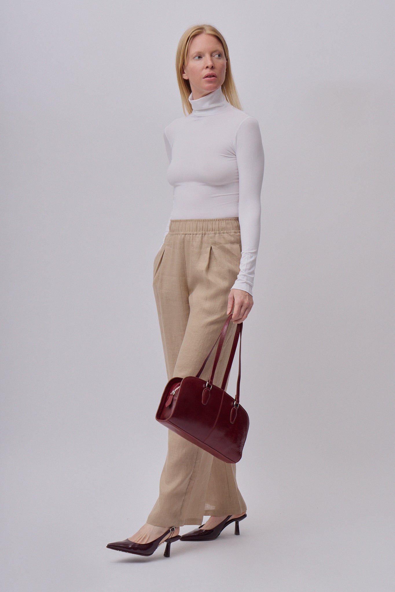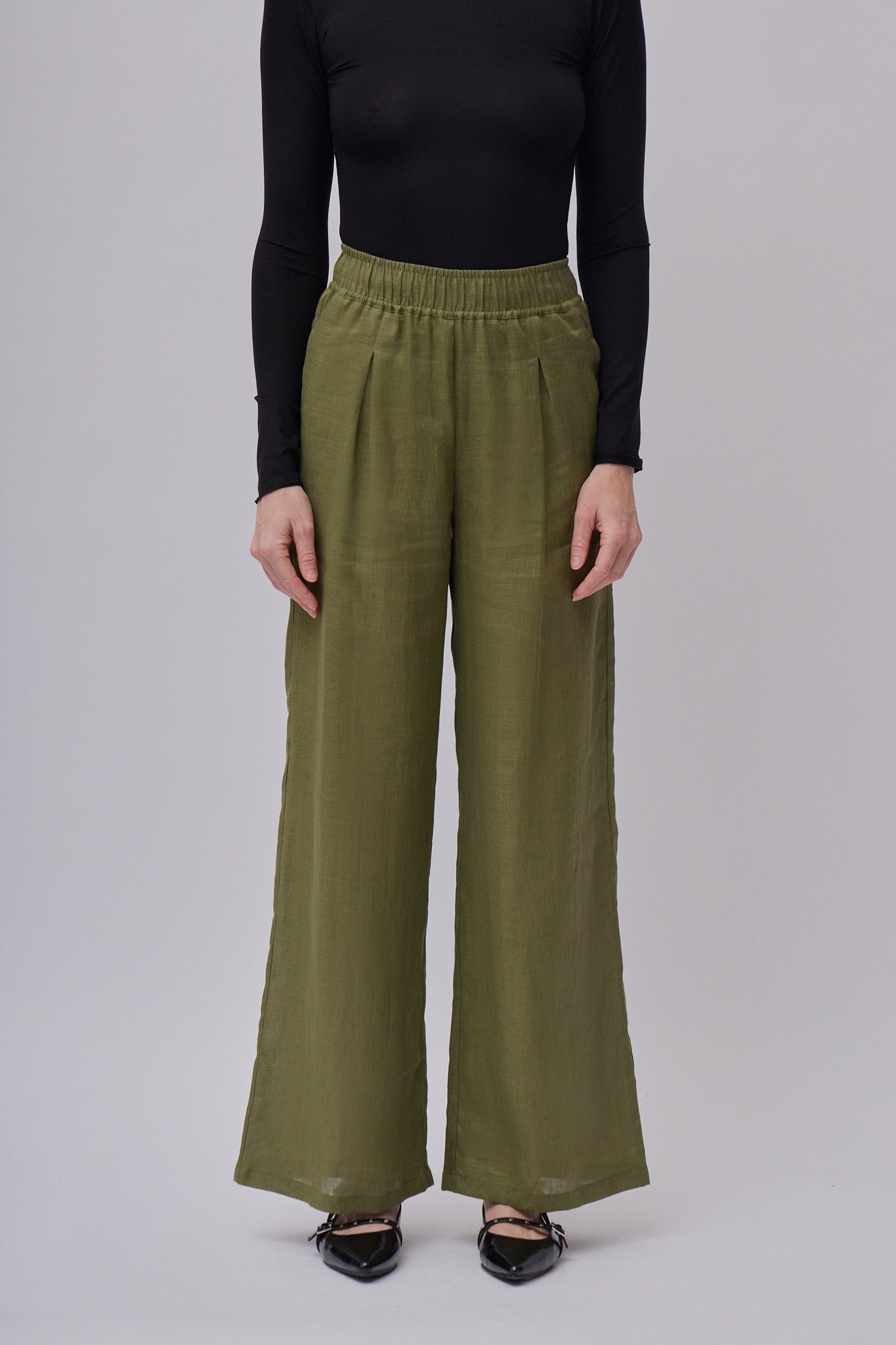 Ľahké nohavice zo 100 % ľanu v uvoľnenom strihu so širokými nohavicami, ktoré krásne splývajú a zabezpečujú maximálne pohodlie počas teplých dní. Vďaka jemnému materiálu a vzdušnému prevedeniu sú ideálne nielen na leto, ale aj na každodenné nosenie.