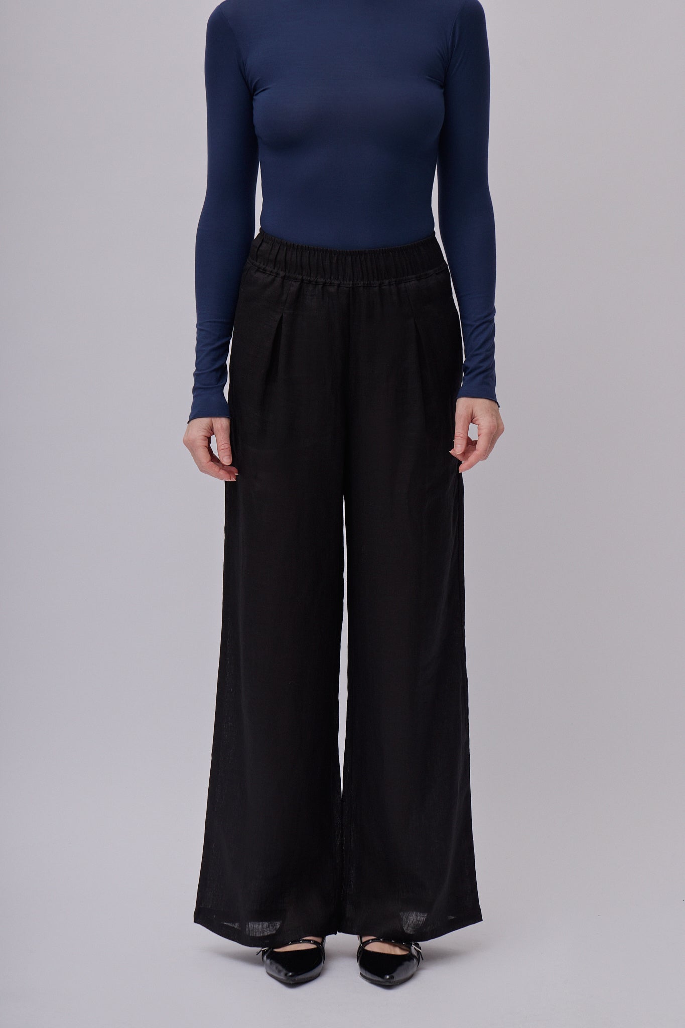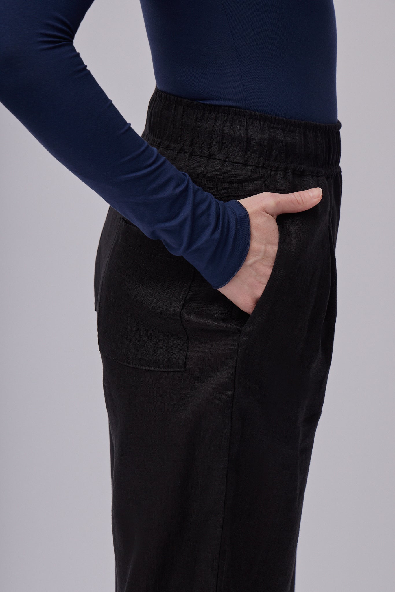 Ľahký ľan je príjemný na dotyk už pri prvom nosení a s každým praním ešte viac mäkne. Vyrábame ich v tmavších odtieňoch, ktoré pomáhajú minimalizovať priehľadnosť. Každý kus je starostlivo a udržateľne vyrobený v Českej republike.