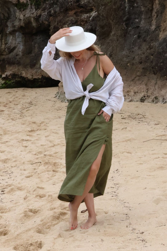 Outfit by Michaela Krajanová | Linen long dress Beige natural
