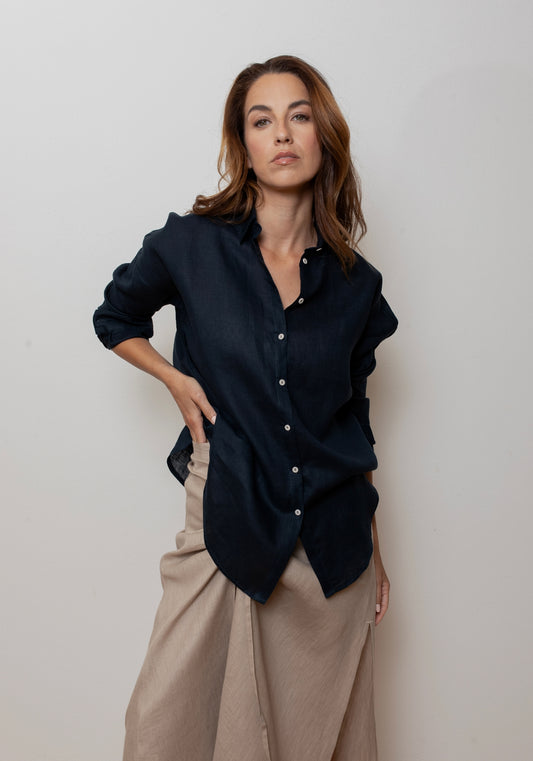 Dámská lněná košile loose fit Black