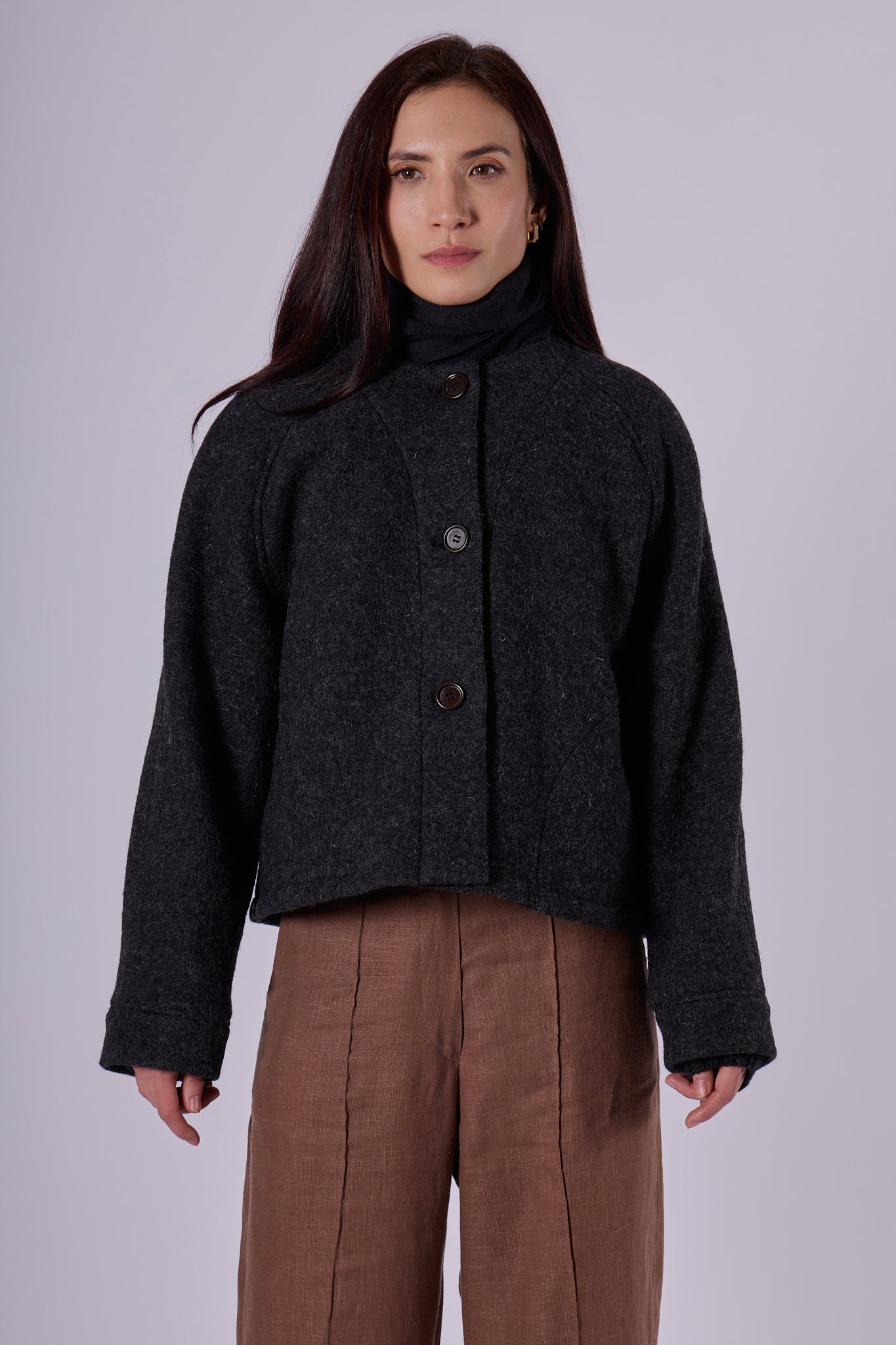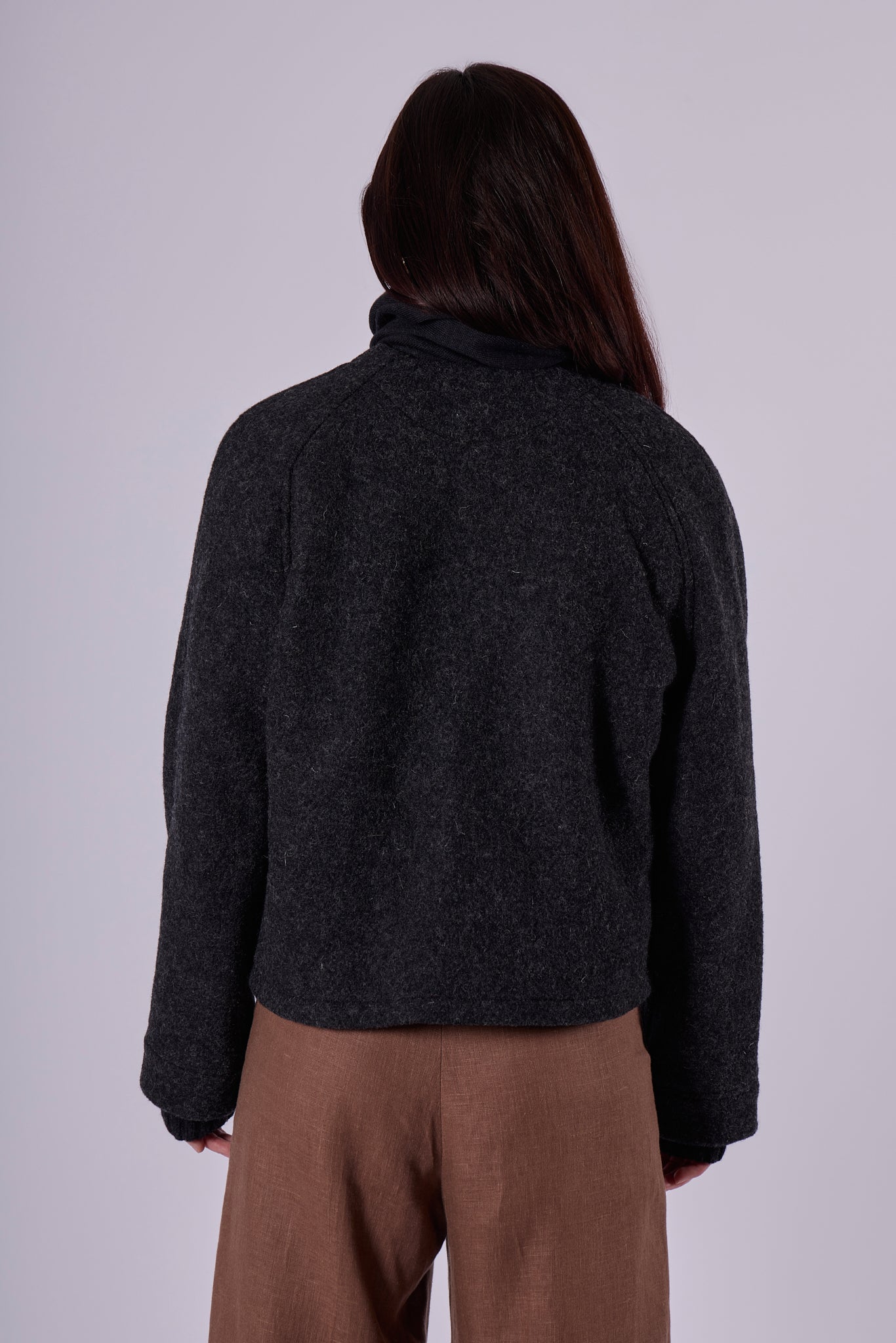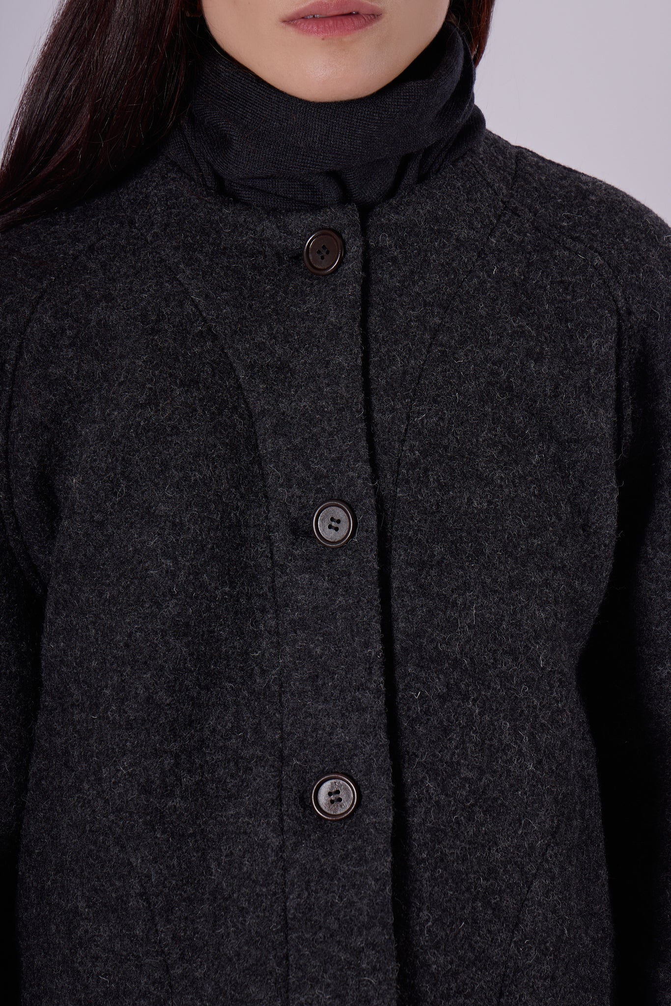Dámský vlněný kabát short Loose fit - Dark gray