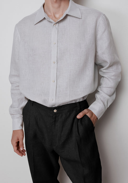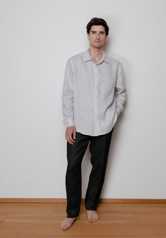 Pánské lněné kalhoty Loose-fit - Black