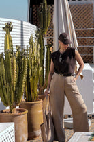 Outfit by Daniela | Linen wide-leg pants Natural beige