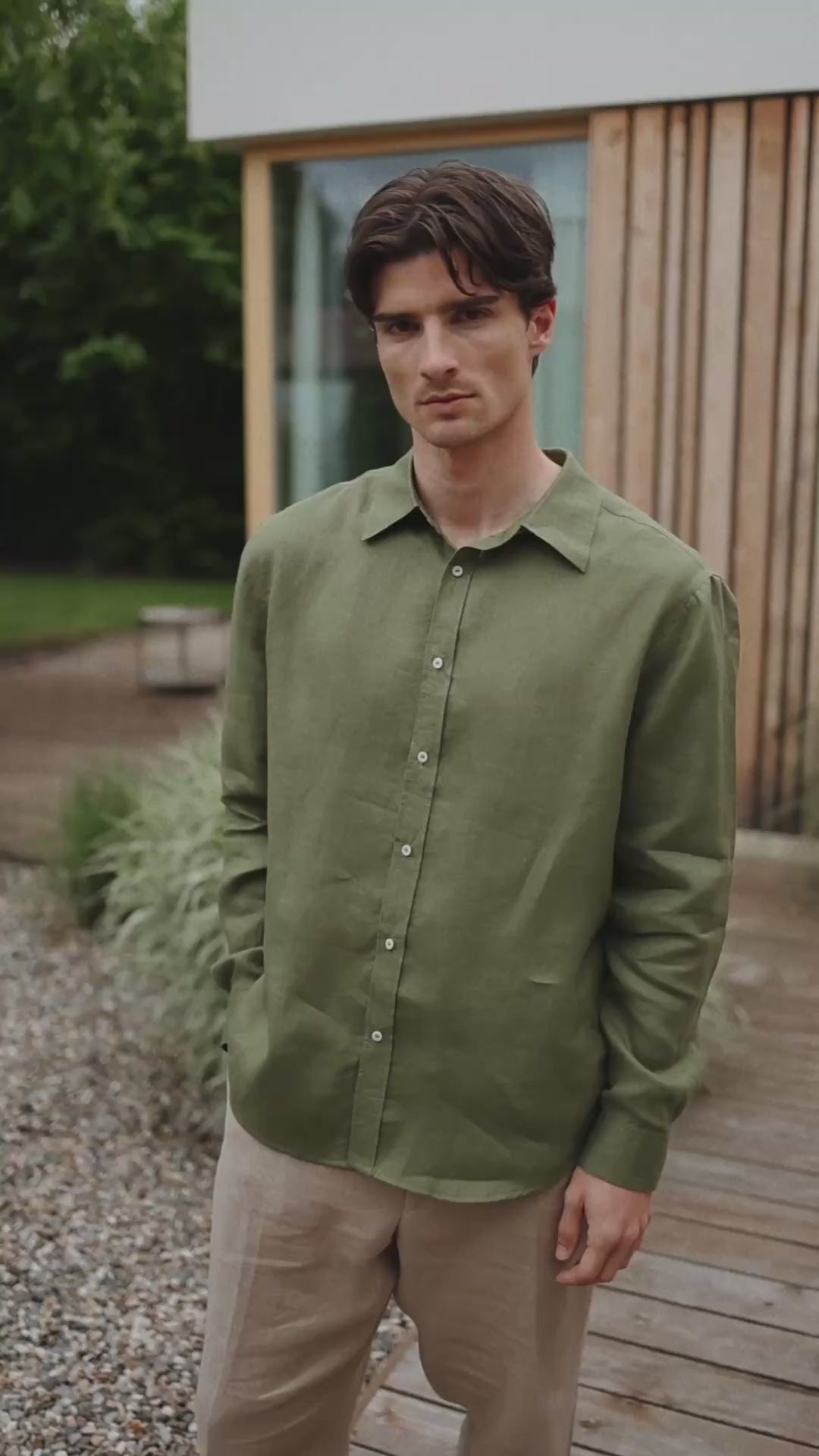 Tato pánská košile s klasickým límečkem je ušitá ze 100% přírodního lnu se změkčující úpravou, díky které je mimořádně příjemná na těle. Volnější střih (loose fit) zajišťuje maximální pohodlí a zároveň působí stylově. Lze ji nosit volně jako ležérní kousek, nebo ji snadno proměnit v elegantní variantu do práce. Ideální do letního i zimního šatníku.