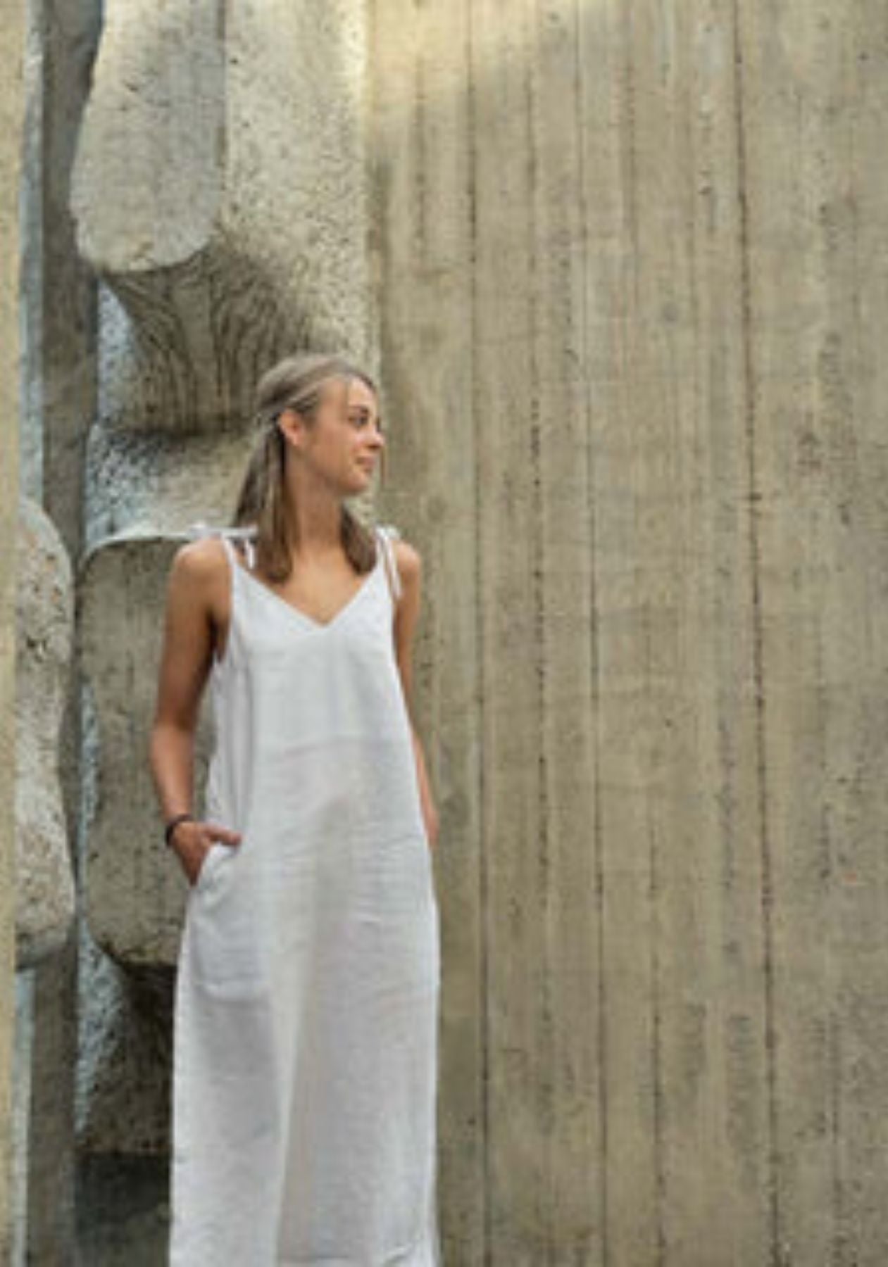Dámské lněné šaty long loose fit Pearl gray (Size)