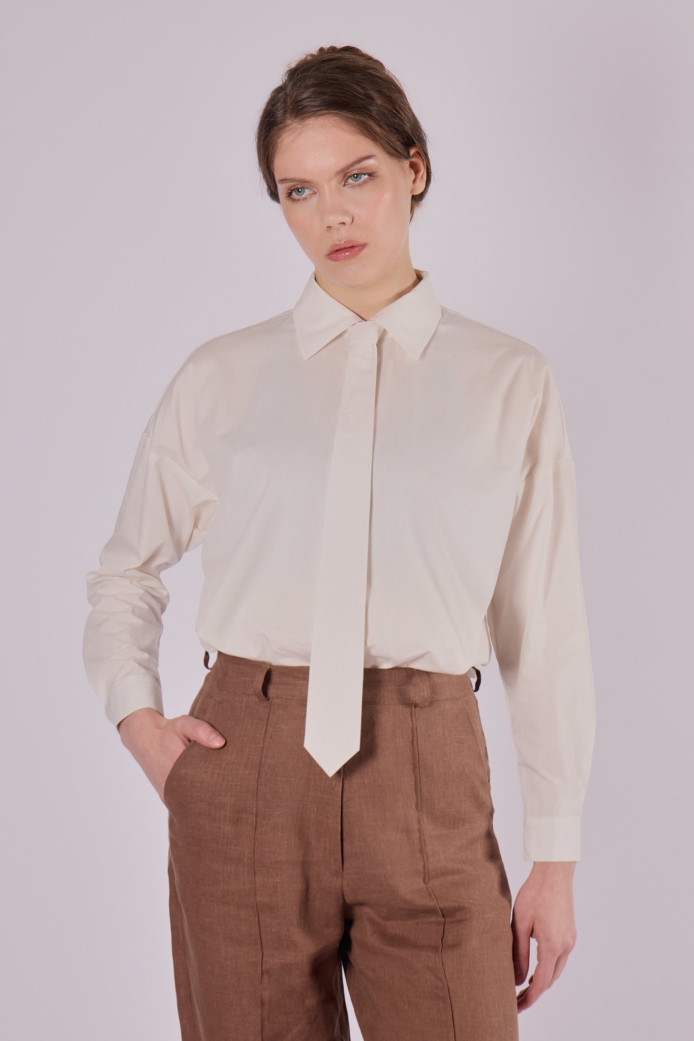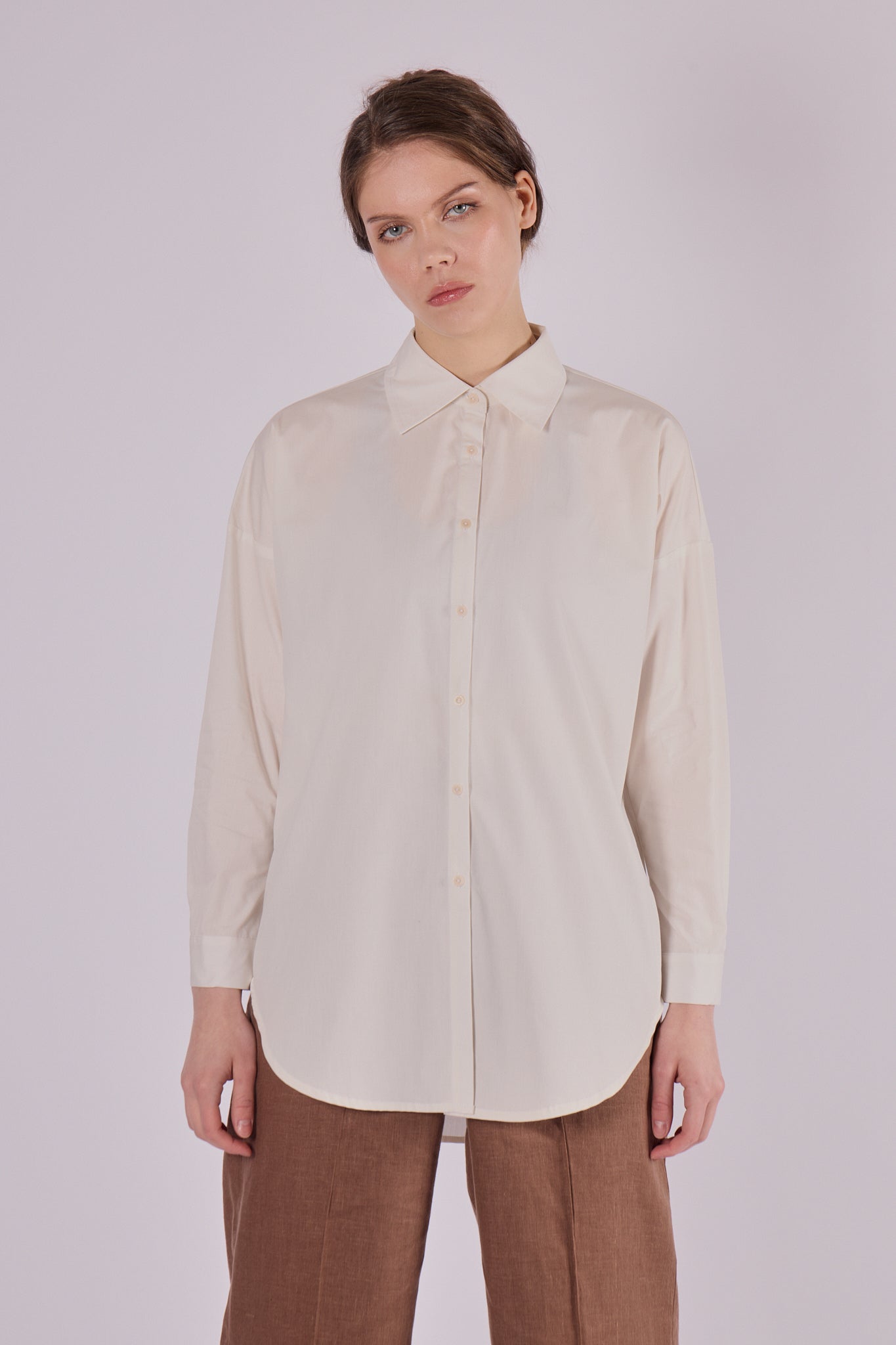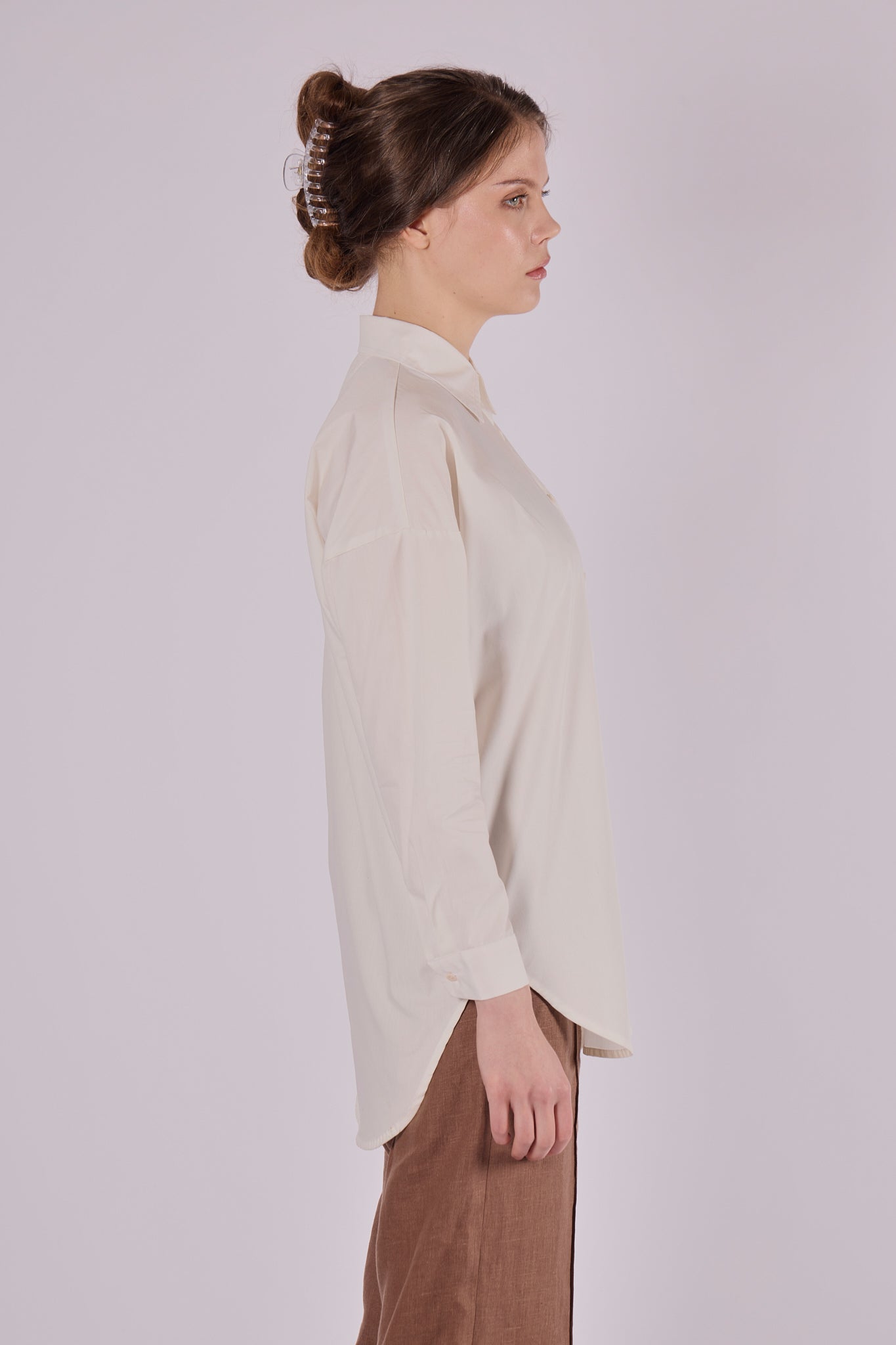 A stylish women’s shirt with a classic collar, crafted from ultra-soft organic cotton. The loose fit offers comfort and freedom of movement while maintaining a refined look. A perfect piece for all seasons – light for summer, layered for winter.