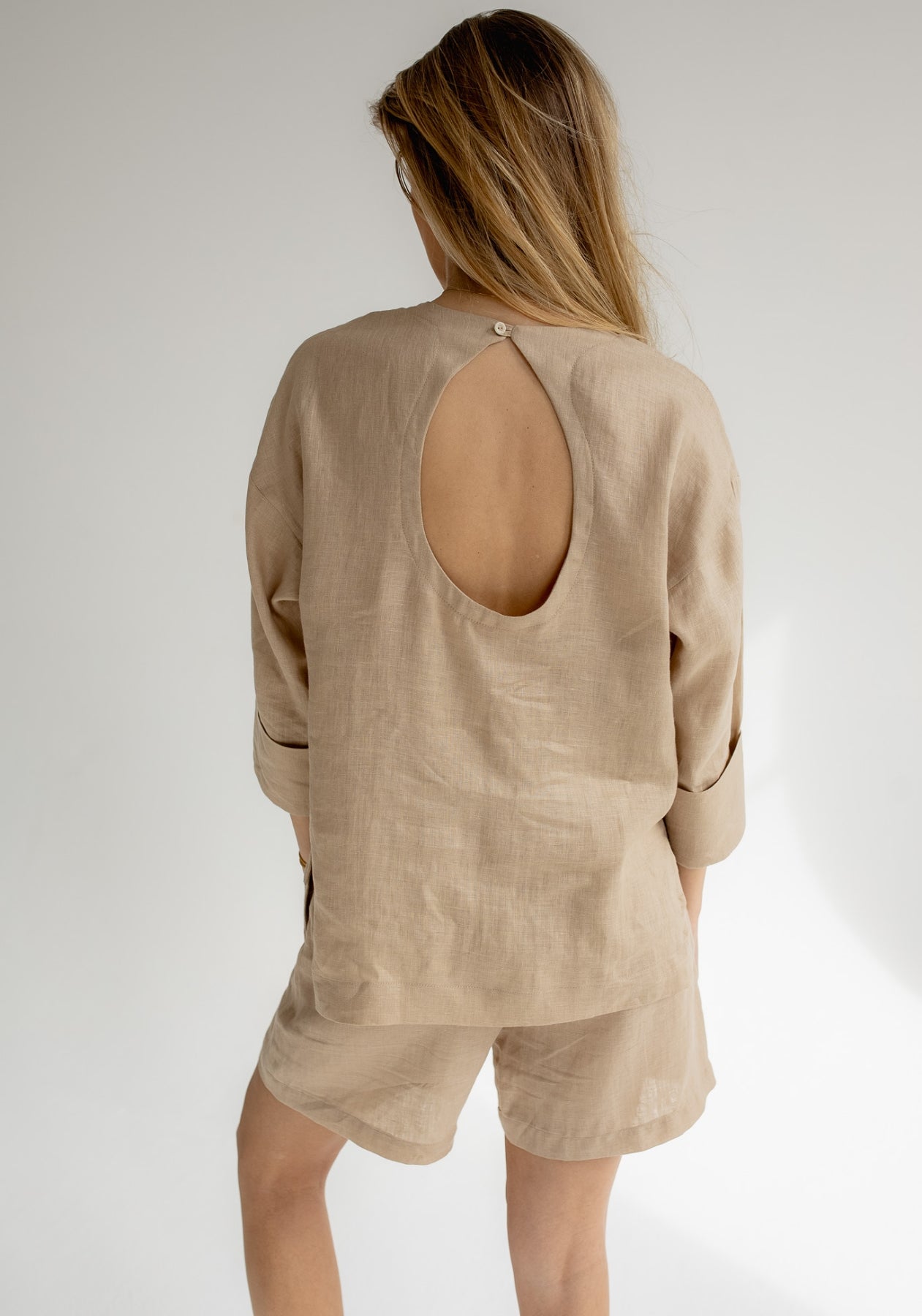 Women's linen top open back - regular fit