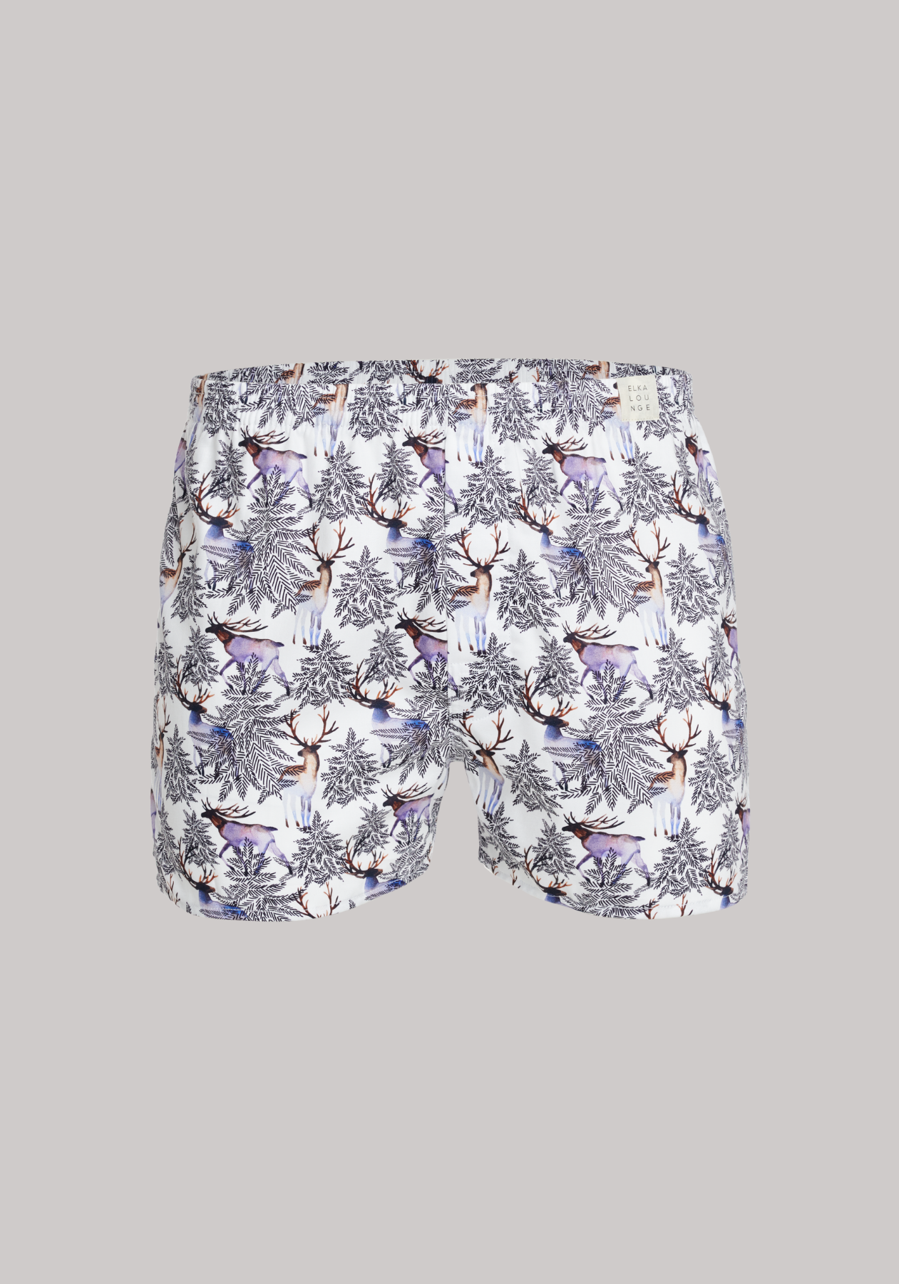 Men's shorts Purple deers made of high-quality 100% cotton with soft rubber. Ideal for sleeping, leisure time and daily wear as underwear. Sophisticated cut that combines convenience and comfort for all types of pants and figures. Concealed flap with button made of natural material Corrozo, practical three-piece part in the seating area. Precisely made in the EU.