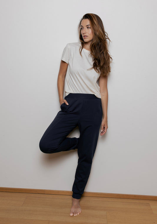 Women Spodnie dresowe bawełna organiczna Deep blue- loose fit