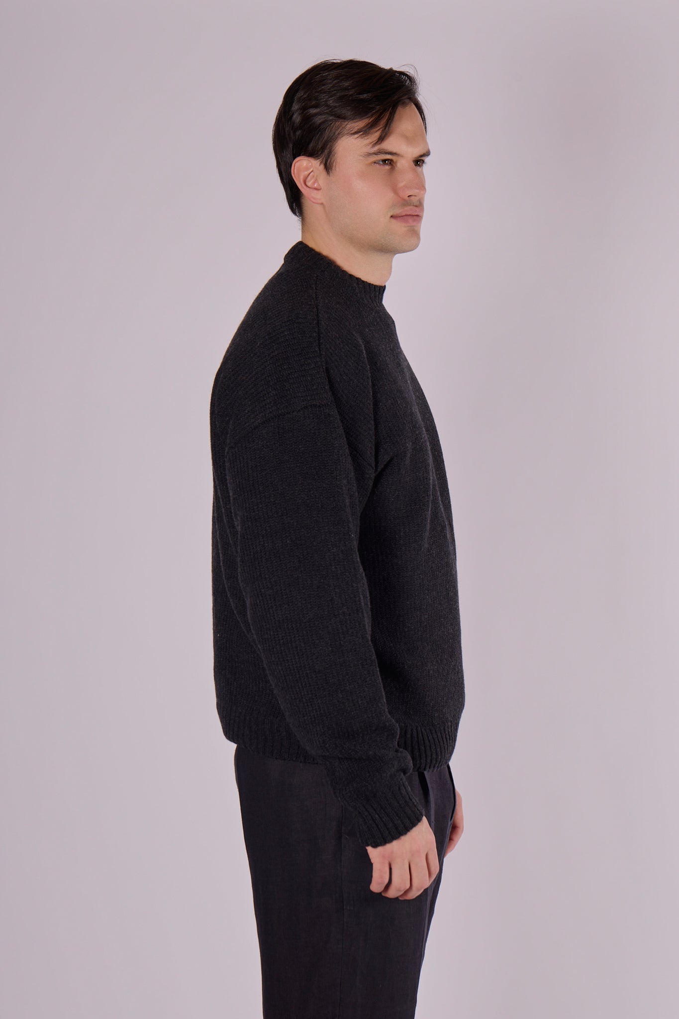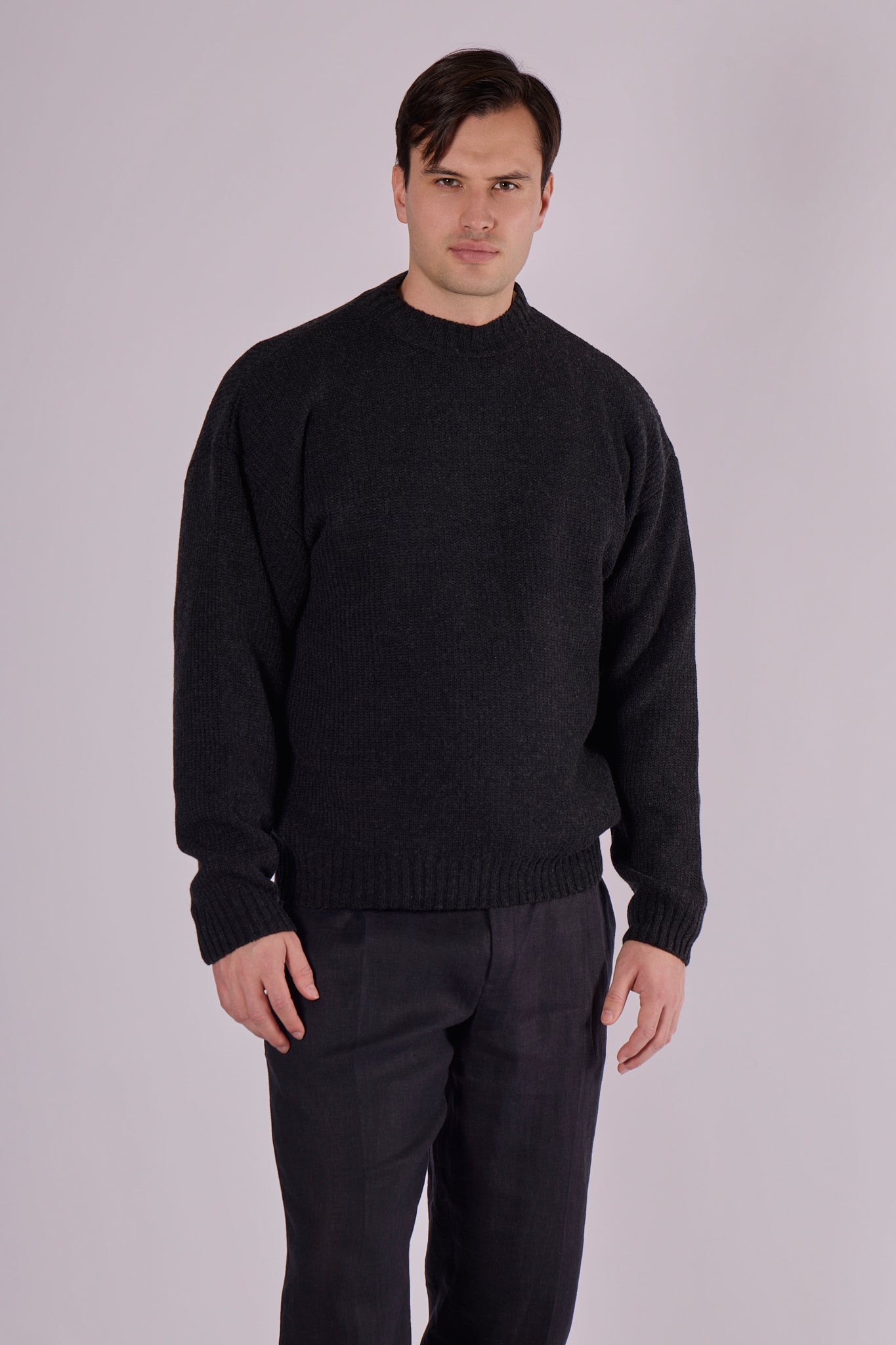 Dzięki luźnemu krojowi sweter zyskuje swobodny charakter, a elegancki ciemnoszary kolor dodaje wyrafinowania i ułatwia łączenie – zarówno z dżinsami, eleganckimi spodniami, jak i koszulą. Doskonały wybór na co dzień, zimowe spacery czy luźniejszy strój do pracy. To prosty, funkcjonalny i elegancki element garderoby, który zawsze się sprawdzi.