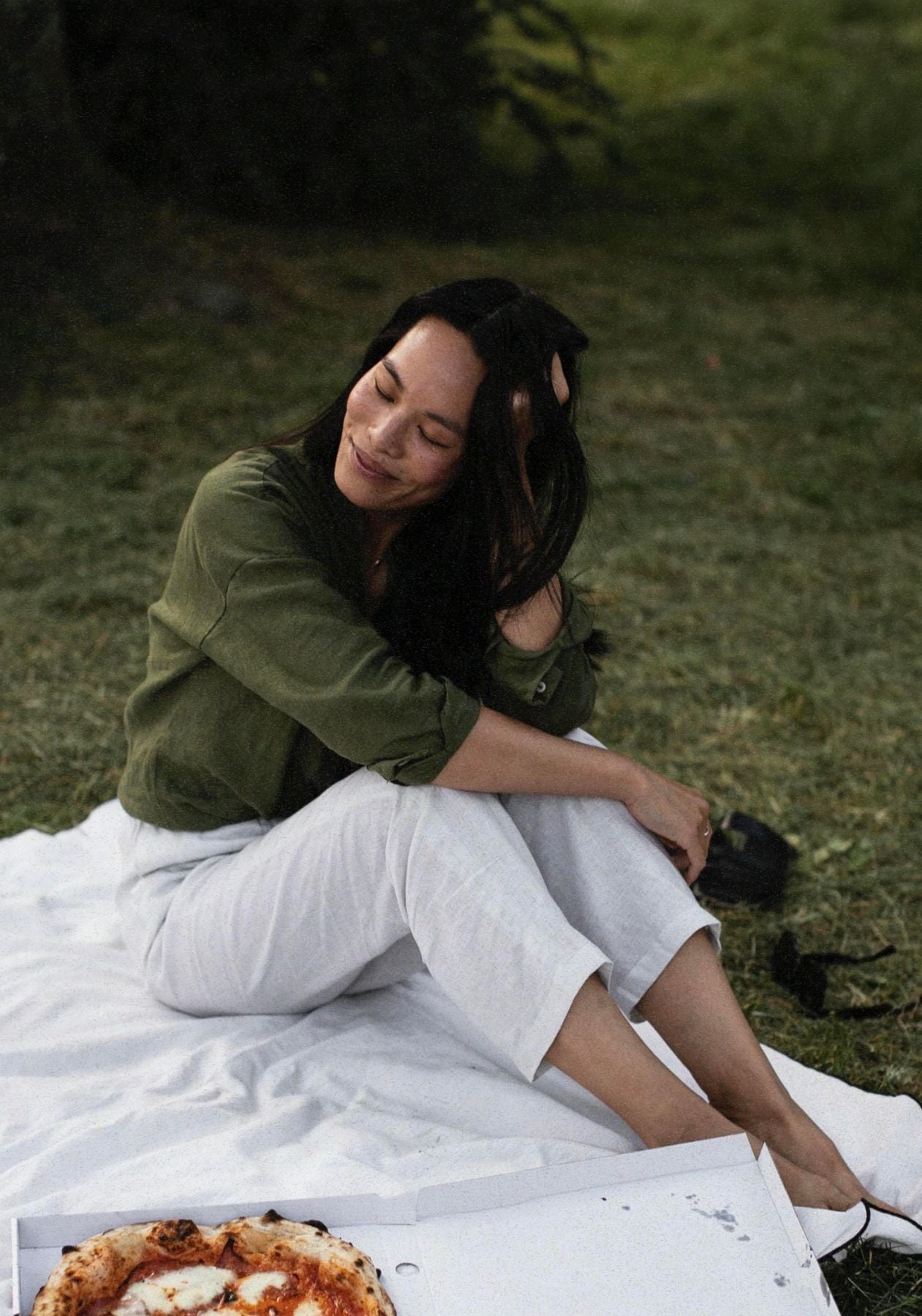 Outfit by @vuong.marce Moss green and pearl gray