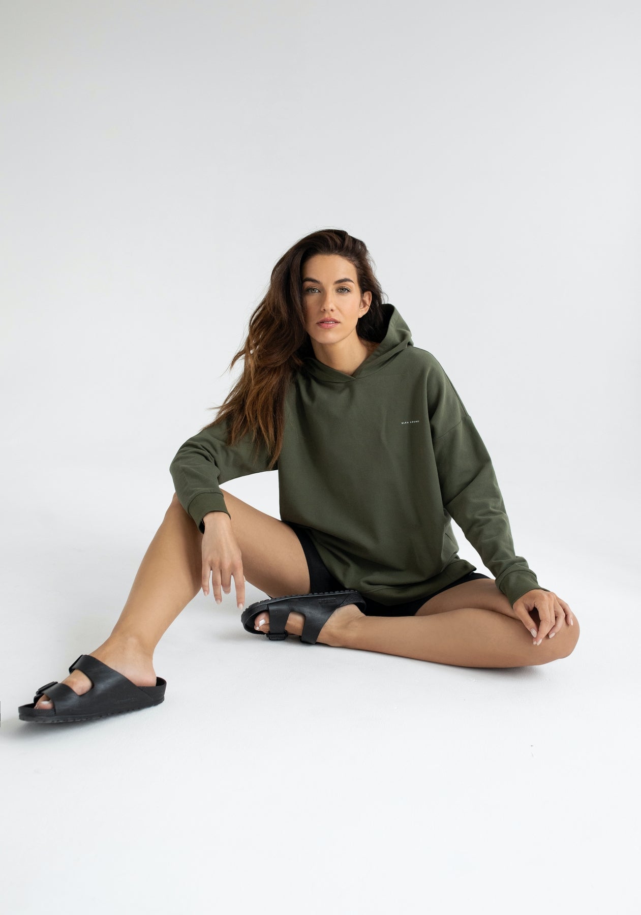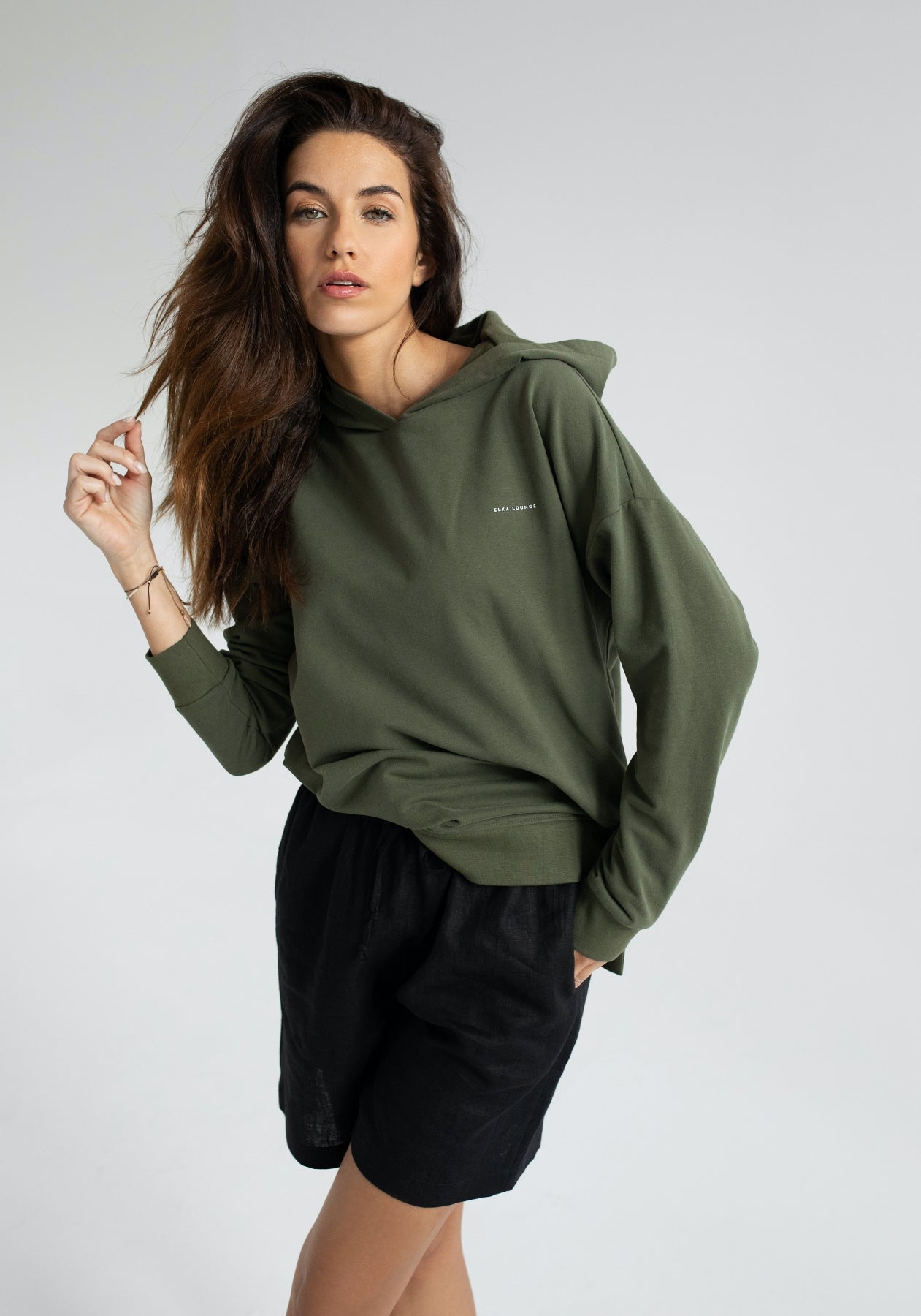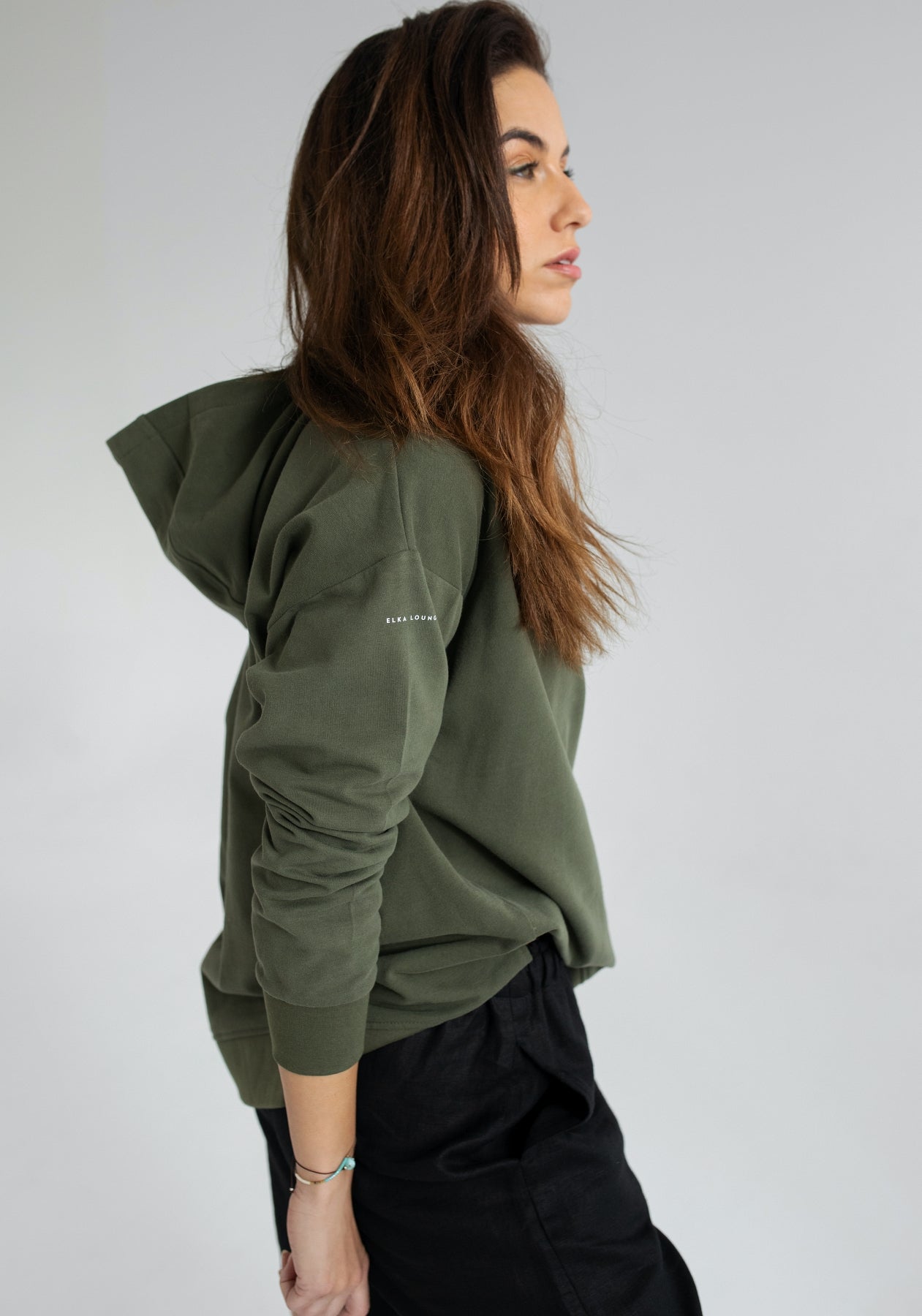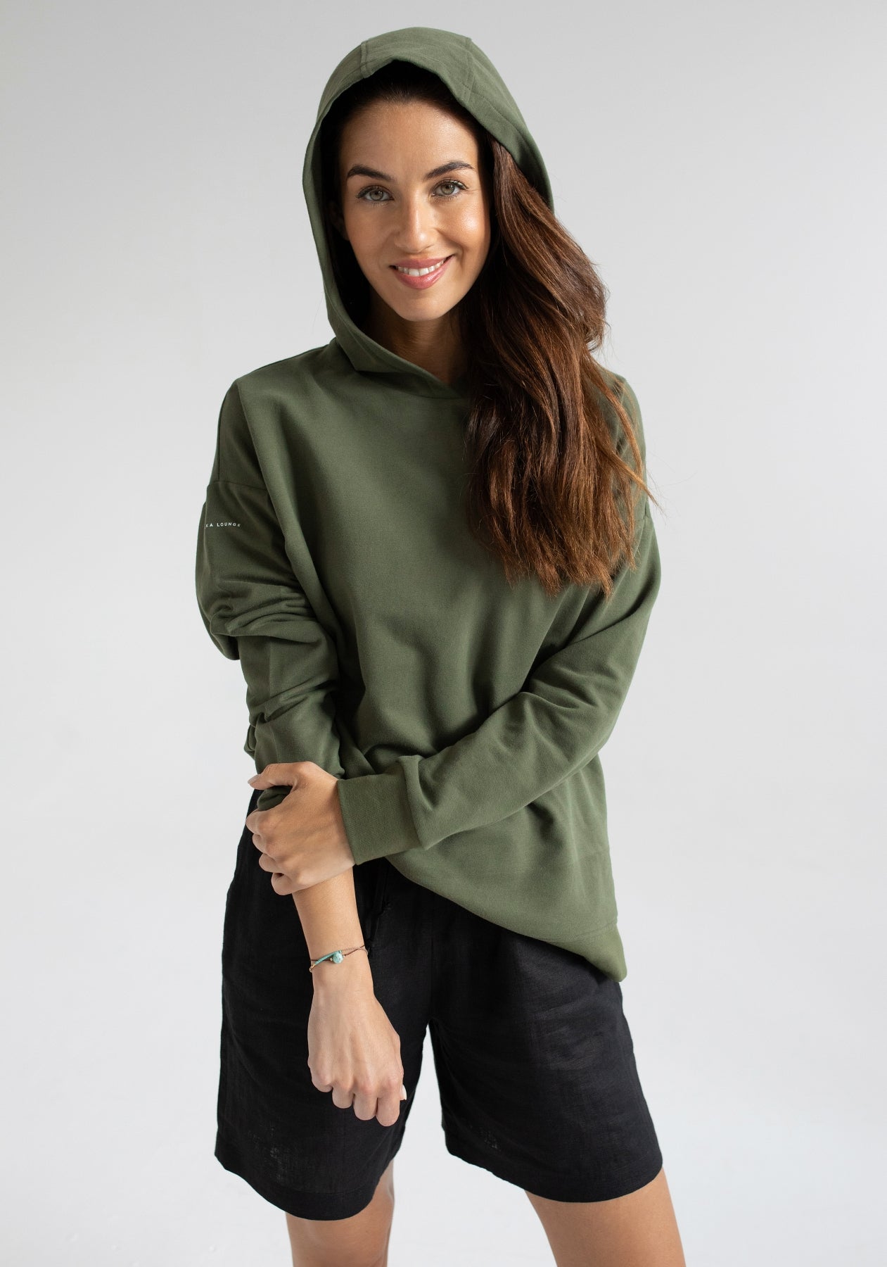 Dámska mikina s kapucňou z biobavlny Moss green brushed - Oversized