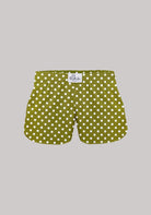 Dámske šortky-trenírky Olive with polka dots vyrobené z vysoko kvalitnej 100% bavlny s jemnou gumou, ktorú prakticky necítite. Dámske šortky-trenírky sú ideálnym outfitom pre spánok aj domáce a voľnočasové aktivity. Vyrobené precízne v ČR & EU.