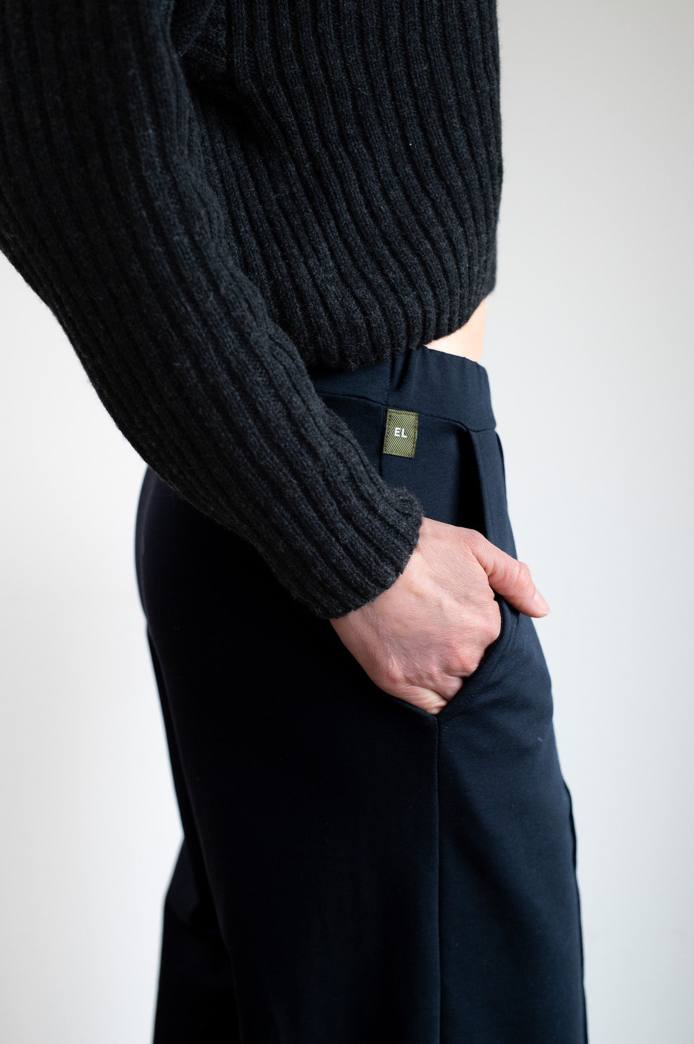 Dámske teplákové nohavice wide-leg z biobavlny Deep blue - Regular fit