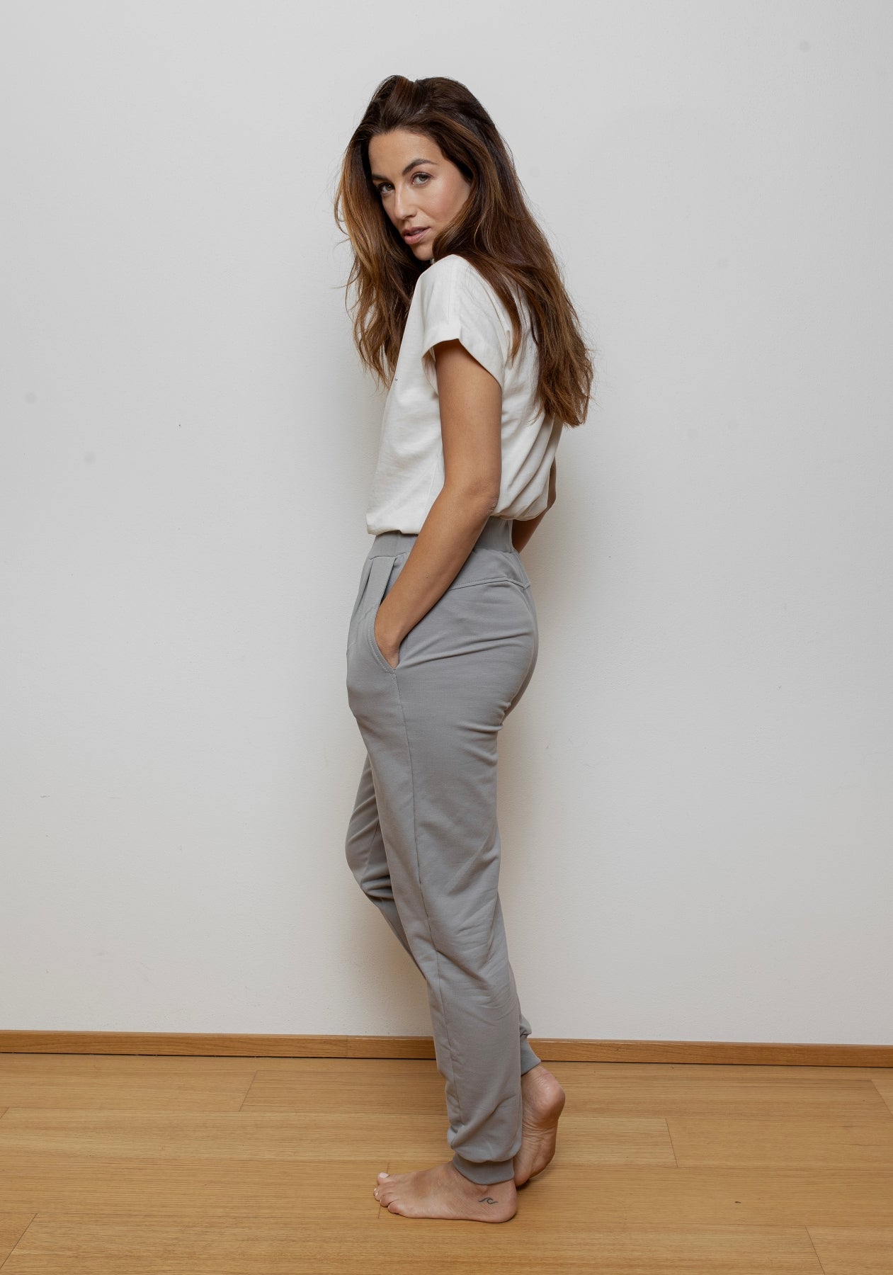 Dámske teplákové nohavice z biobavlny Gray brushed - loose fit