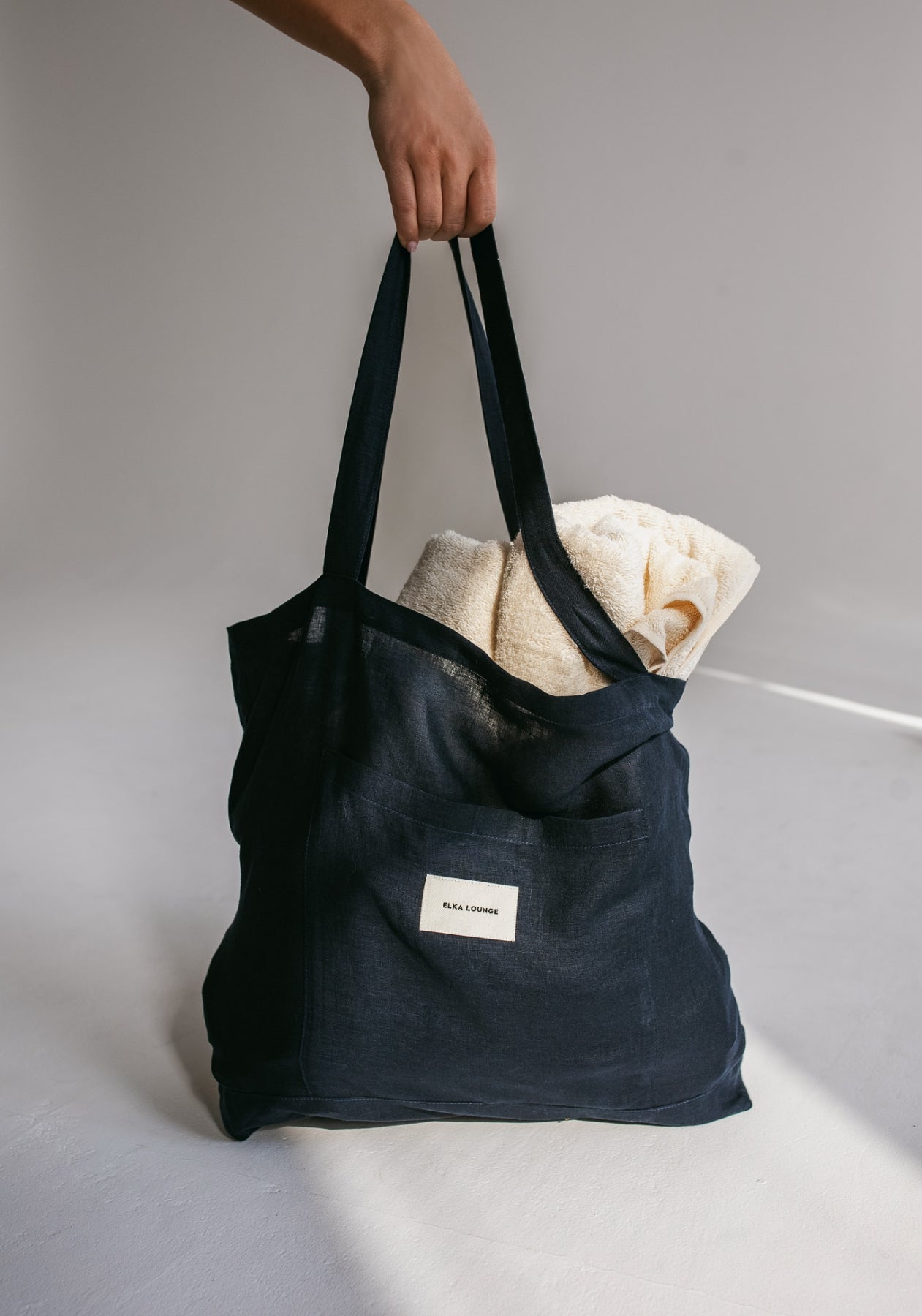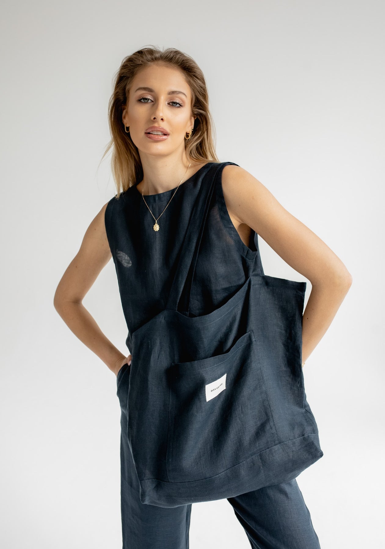 Ľanová taška, praktický doplnok pre každodenné aktivity. Perfektne ju kombinujte s ďalšími ľanovými kúskami z našej ponuky. Ľanová taška má jedno veľké vrecko, kam sa zmestí všetko potrebné, a menšie vrecko z vonkajšej strany pre lepšiu organizáciu.