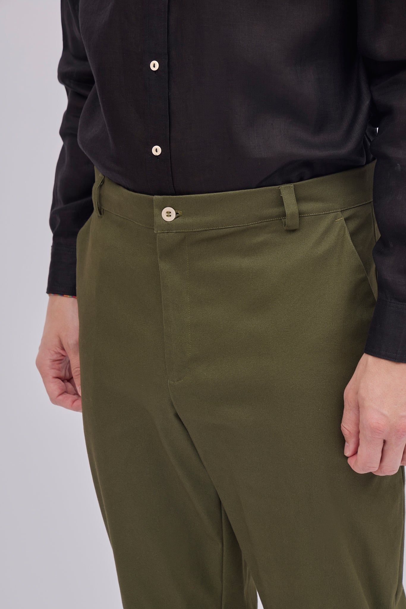 Nohavice sú vyrobené z kvalitnej bavlny, ktorá je príjemná na nosenie a zároveň si dobre drží tvar. Pre dokonalé padnutie navyše ponúkame možnosť úpravy na mieru, ktorú si môžete k produktu jednoducho pridať.