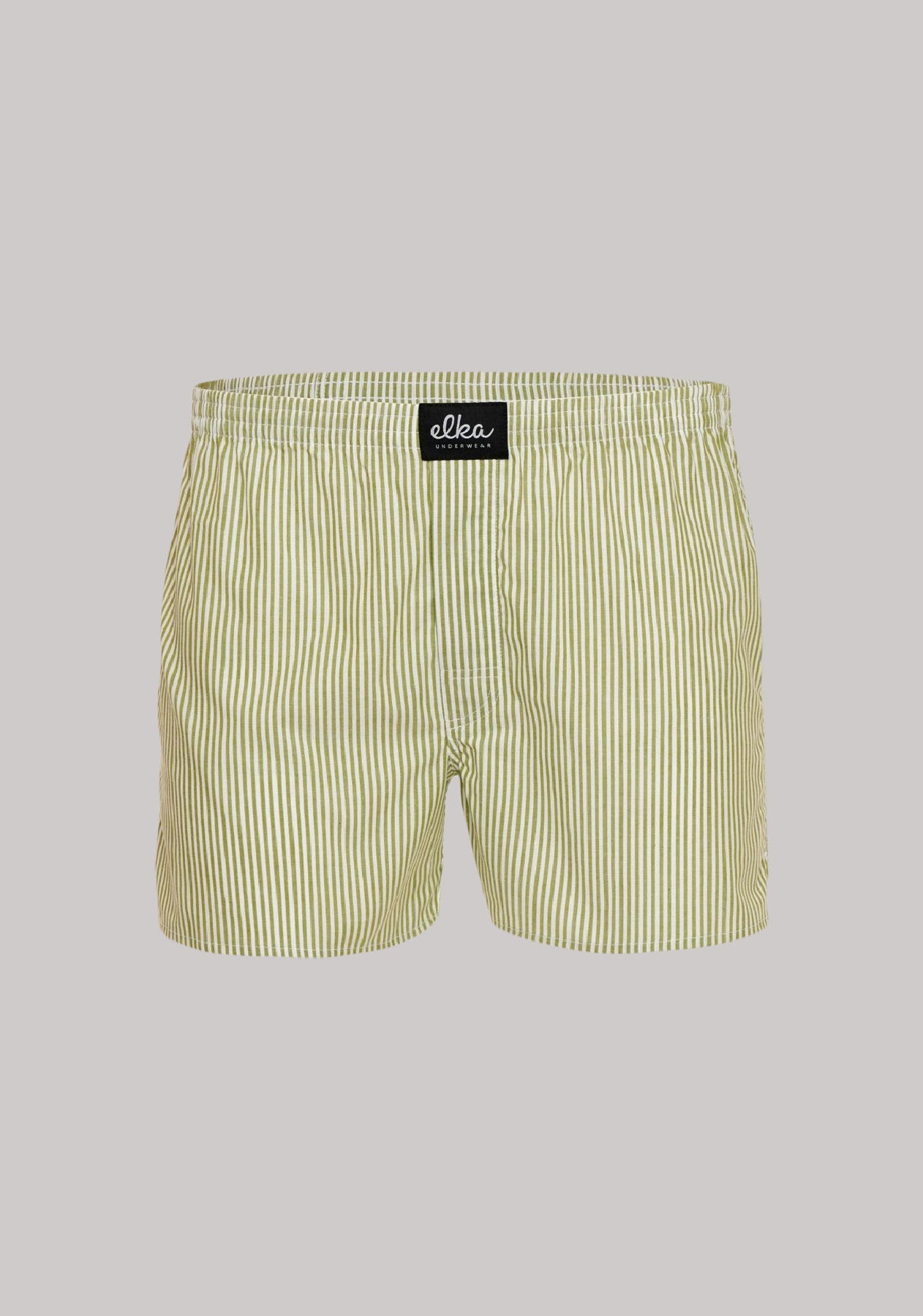 Pánske kraťasy-trenírky Olive with stripes z vysoko kvalitnej 100% bavlny s jemnou gumou. Ideálna na spánok, voľnočasové chvíle aj denné nosenie ako spodná bielizeň. Prepracovaný strih, ktorý snúbi pohodlie a komfort pre všetky typy nohavíc a postáv. Skrytý rázporok s gombíkom z prírodného materiálu Corrozo, praktická trojdielna časť v oblasti sedenia. Vyrobené precízne v ČR & EU.